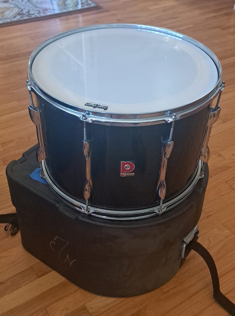 Black Premier Tenor Drum. 18 x13 with hard case. Heads are good.
