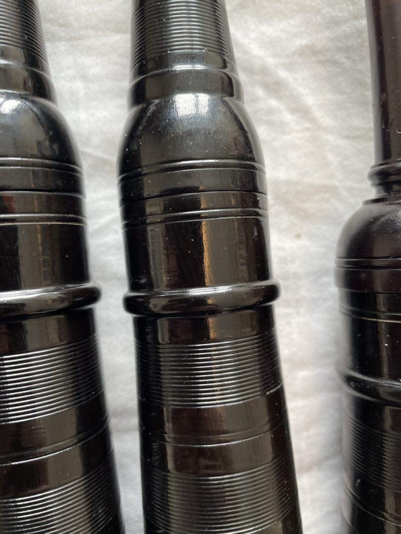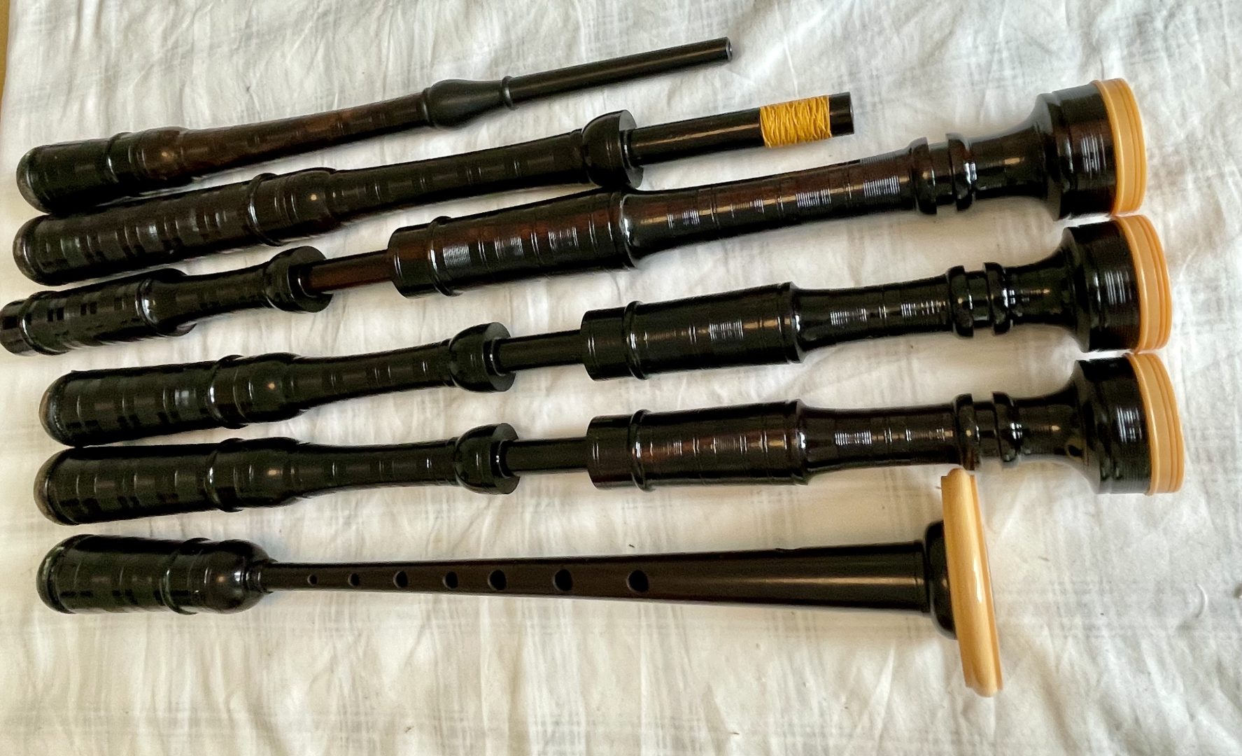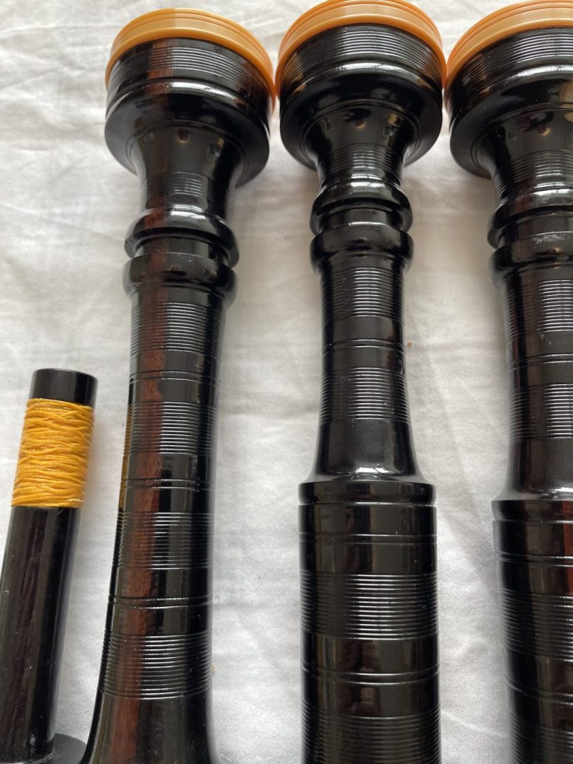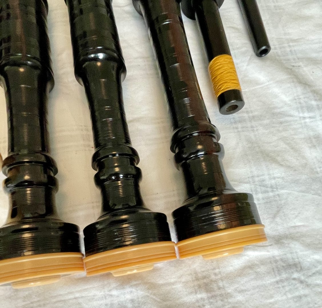 In like new condition, please find this 1970’s era Hardie bagpipe, complete with the original chanter. Flat combed with wood button mounts. No cracks anywhere. Will add an RJM poly chanter to give you a modern pitched chanter too. Really gorgeous wood grain. Light weight, and no worries crossing borders with the set. Make a fantastic student bagpipe as well. $750 Canadian including shipping and insurance in Canada. For my American friends, add $75 Canadian for your tariff and I can ship to you, for a total of $825 Canadian (about $600 US).