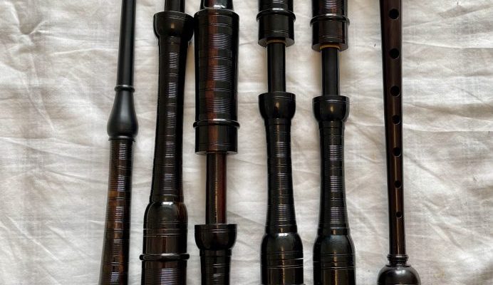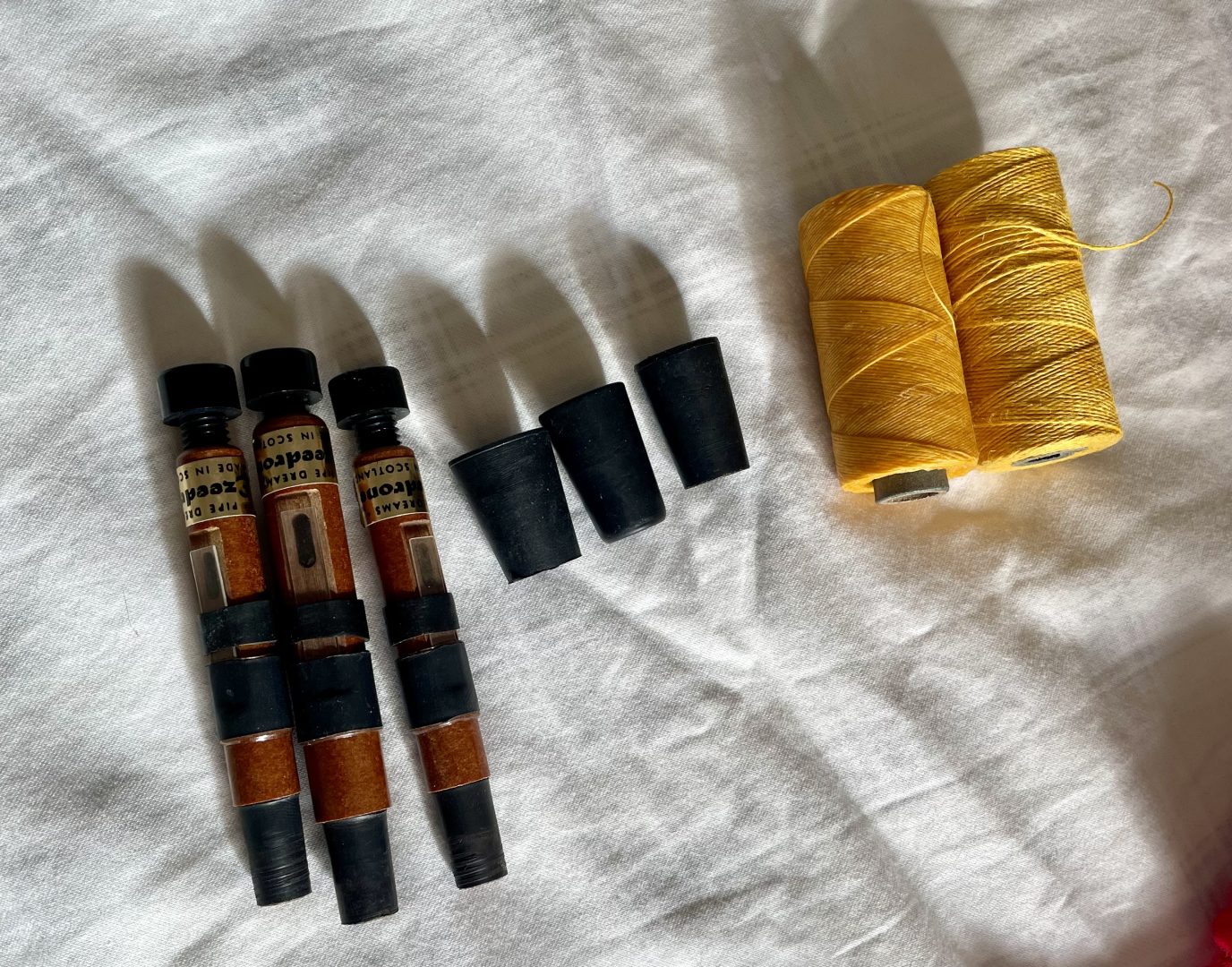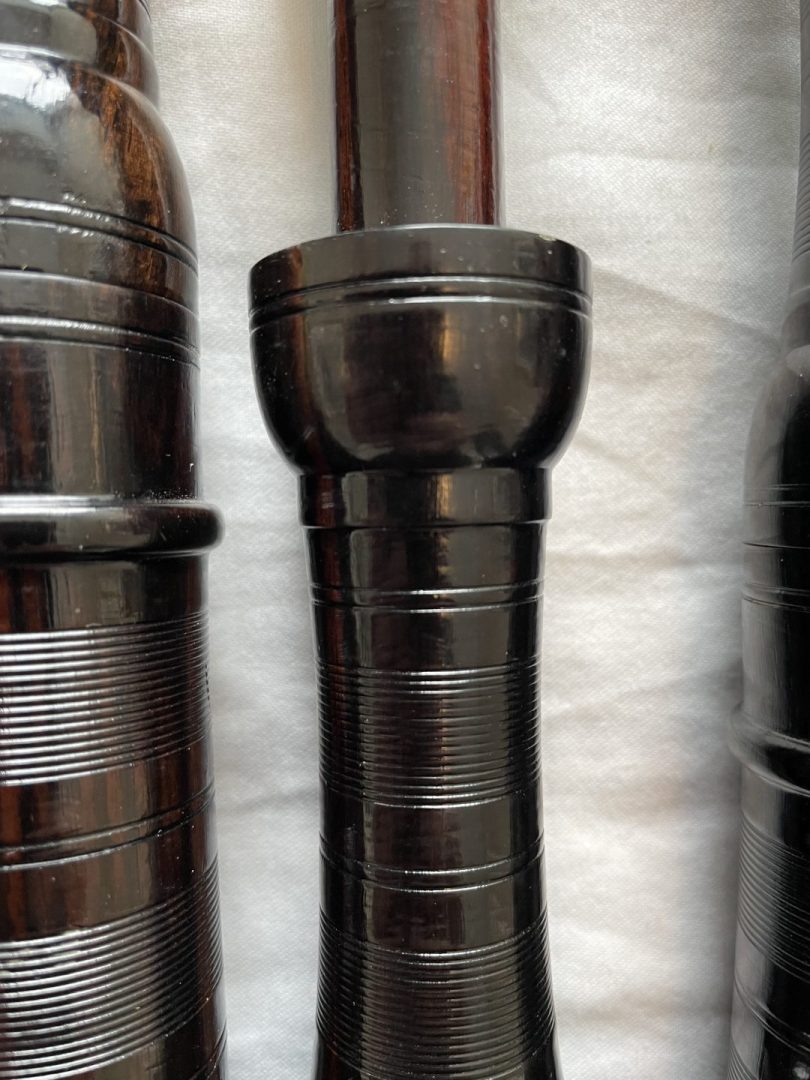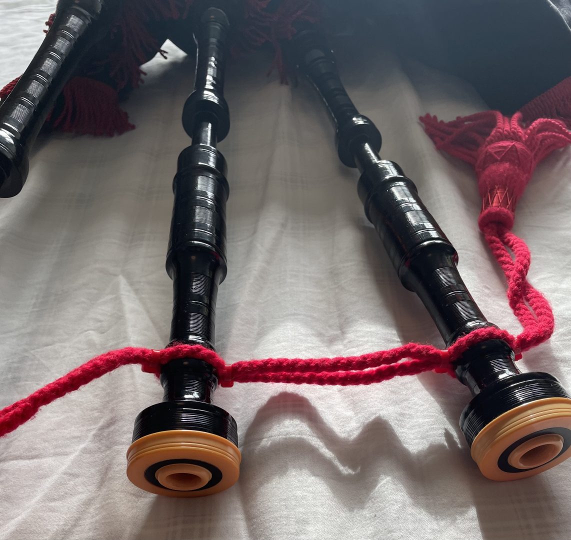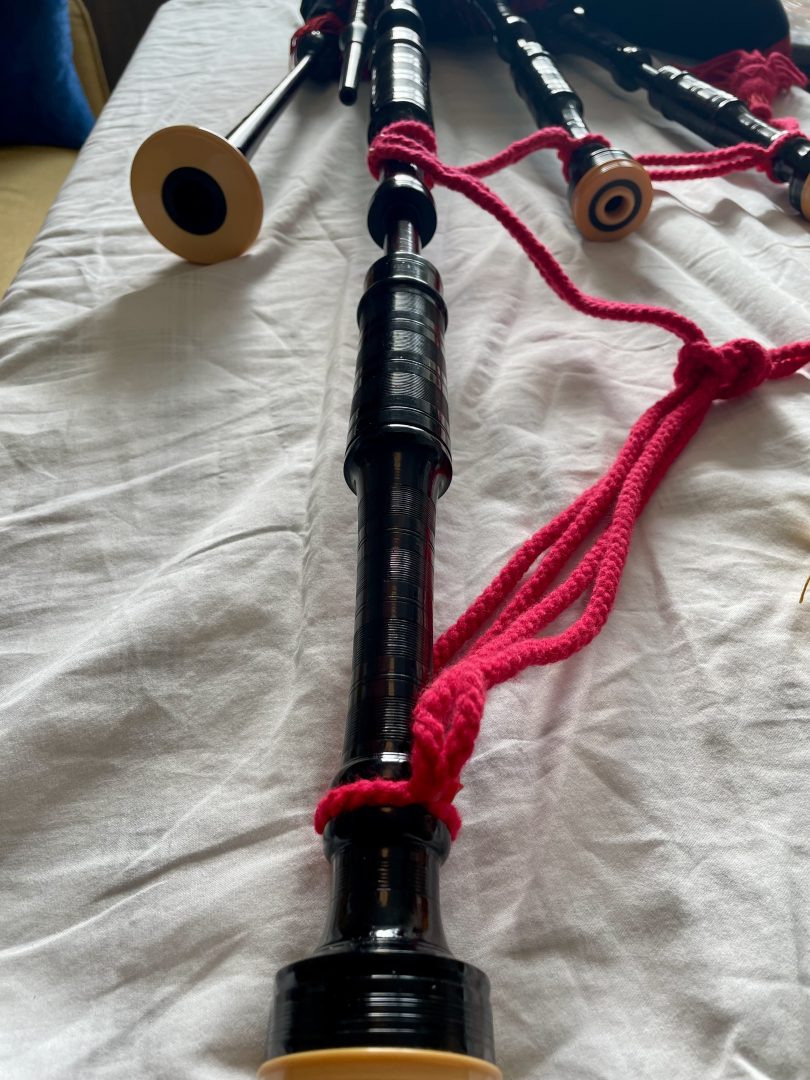 In great condition, please find this 1970’s era Hardie bagpipe, complete with the original chanter. Flat combed with wood button mounts. No cracks anywhere. Really gorgeous wood grain. Light weight, and no worries crossing borders with the set. Make a fantastic student bagpipe as well. Complete with Bannatyne medium bottom zipper bagpipe bag, airtight, cover, cords, new Ezeedrone reeds, and supplies. Hard case is available for free if you pick the set up, or for an extra $45 Canadian to ship it with the pipes. $900 Canadian including shipping and insurance in Canada. For my American friends, add $100 Canadian for your tariff and I can ship to you, for a total of $1000 Canadian (about $725 US).