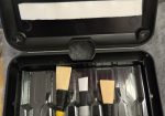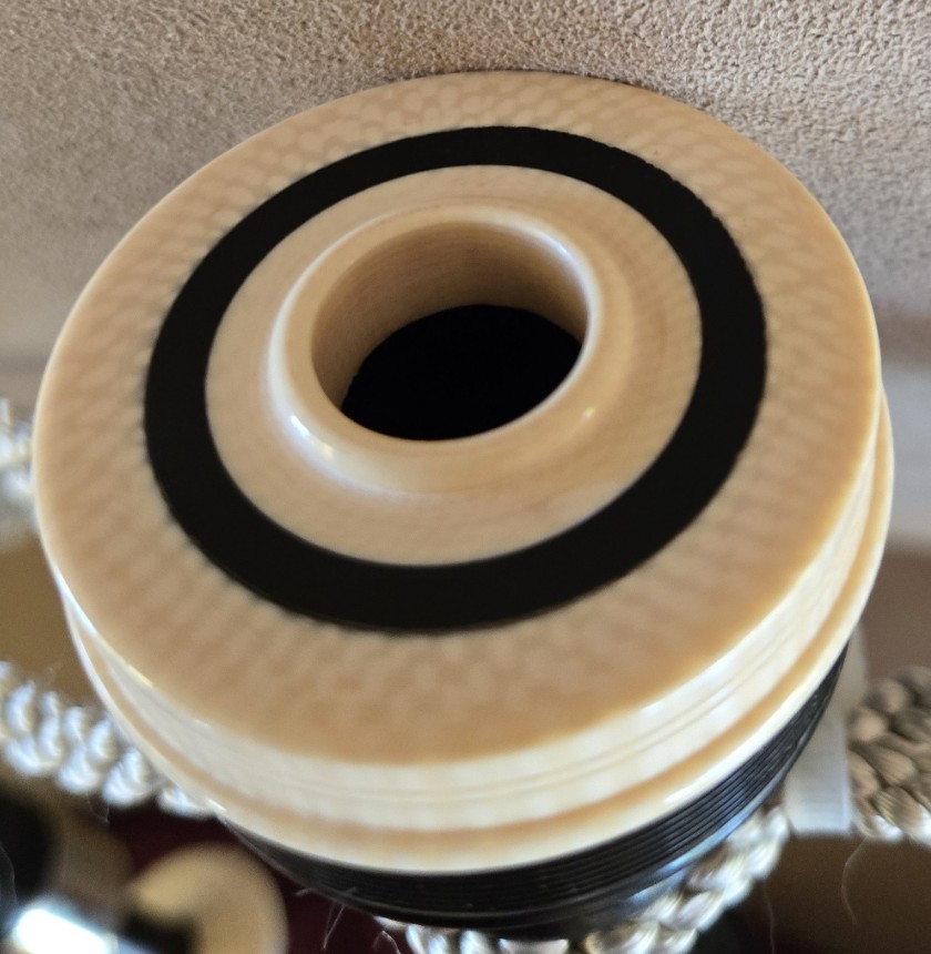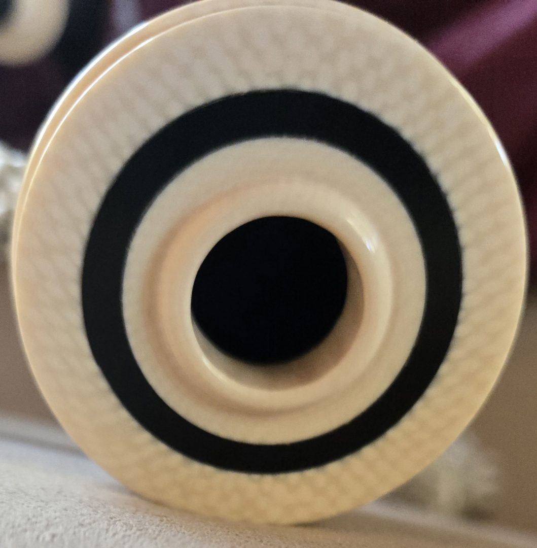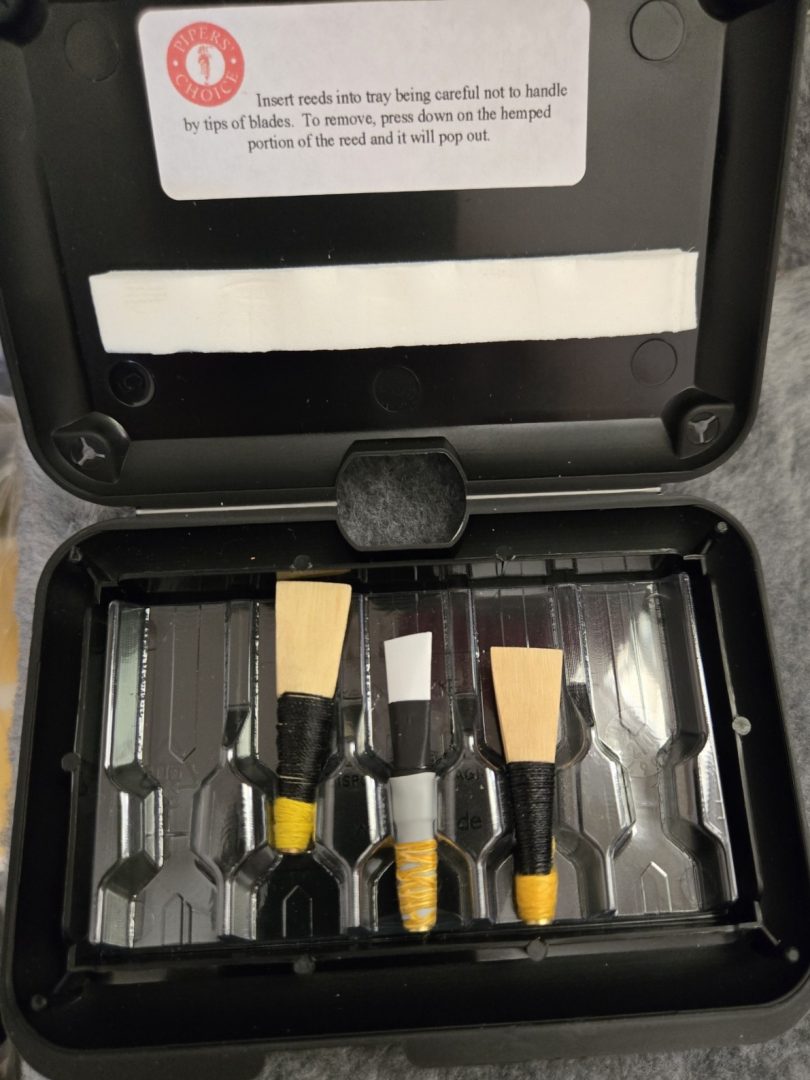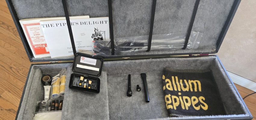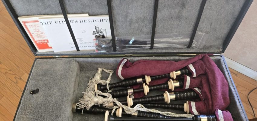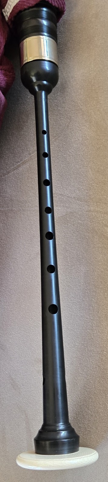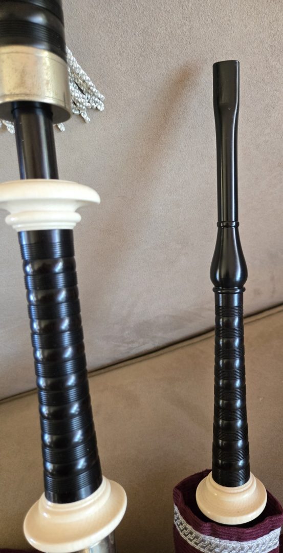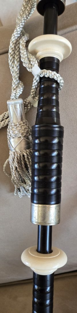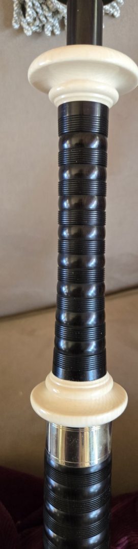 I am offering this mint 2025 set of Ronnie Hein RH03 bagpipes made of African Blackwood with imitation ivory mounts and nickel ferrules. The last pic is the drones before he turned them on the lathe. Ronnie is an amazing prize winning piper at several competitions in Scotland and elsewhere, as well as pipe maker. His customer service is amazing and his pipe bores are based on 1910 Hendersons. The imitation ivory has grain like real ivory. I bought these pipes new in late 2025 and have not played them other than to try out drone reeds a few times. Turns out after not having played pipes for over 30 years, I am no longer able to handle full size pipes. I would like to sell or trade for a set of smallpipes or parlor pipes such as Gibson Fireside pipes or maybe McCallum Folk Pipes. I prefer cocobolo Gibsons or blackwood McCallums. These pipes come with accessories and a pipe major hard shell case. The bag is a Canmore medium zipper bag. I bought the pipes as sticks and stocks, and got the bag from a piper who tried it and decided to step down to an extended small bag. There are a couple of tutor books with it, and cleaning brushes as well as some extra accessories such as a set of Ezeedrone reeds and a set of new cane reeds. You can watch Matt Willis’ review of Hein pipes on YouTube; he thoroughly recommends them. These are a premium set of pipes for new and advanced pipers. They can be picked up in Ventura California or they can be shipped. I will pay shipping in the U.S.