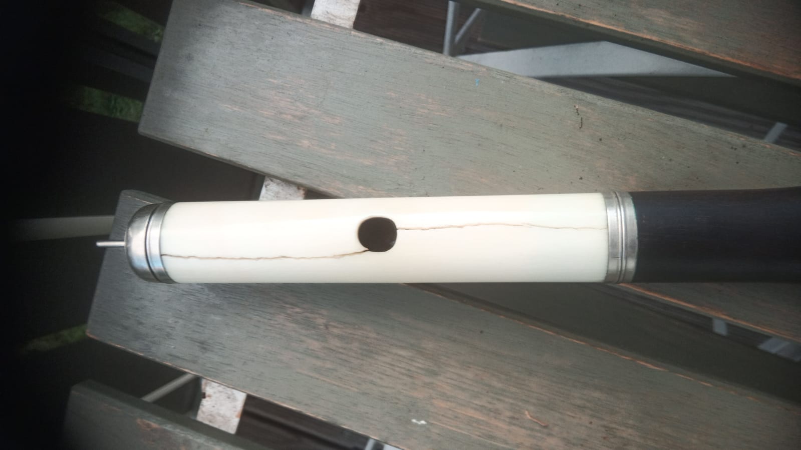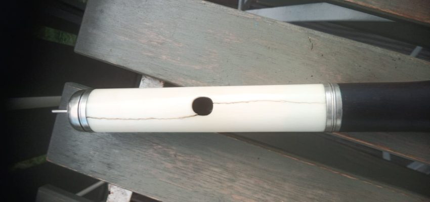 Antique keyed blackwood flute, white head.