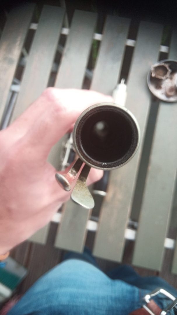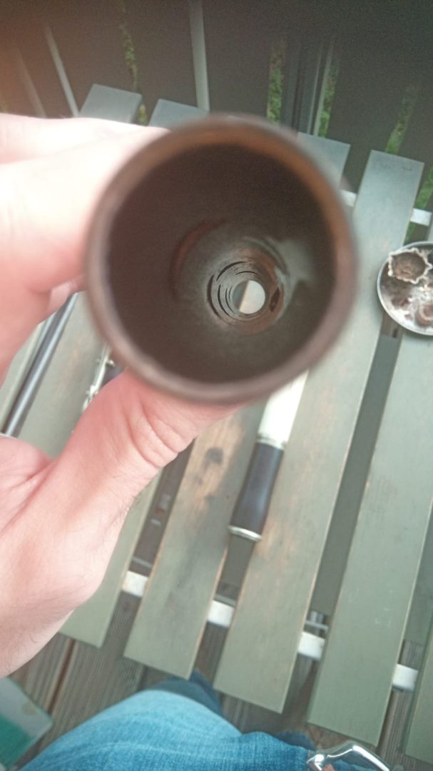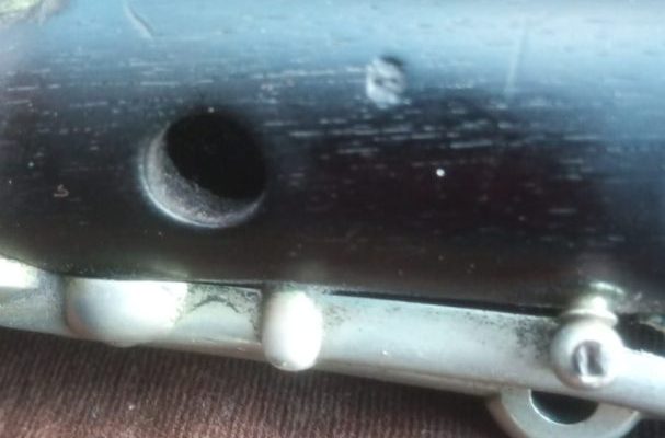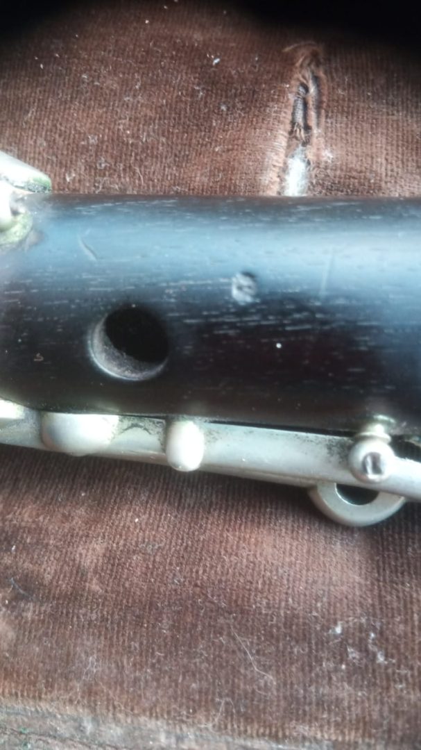 The head presents a crack, but it´s lined with german silver and thus still airtight and playable.