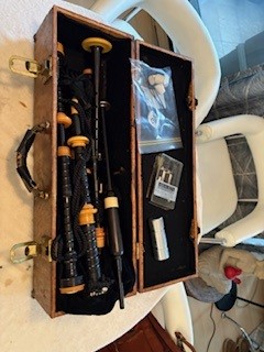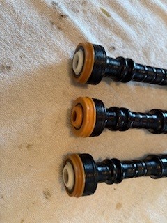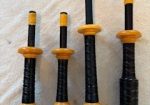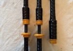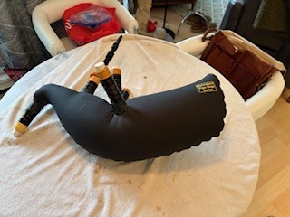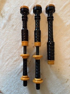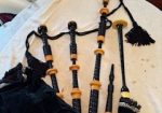 I purchased the estate of a former Pipe Major last year and I am currently working my way to the back of the storage shed I had to rent! This is a bit of a mixed set (hence the price), combed and beaded blackwood with imitation projection mounts, ferrules, ring caps and bushings. Comes with a Bannatyne synthetic medium pipe bag, a poly adjustable blowpipe with Little Mac valve, a lovely blackwood Piobmor (Glasgow) pipe chanter with Clanrye synthetic reed and cap, unmarked practice chanter, old set of Shepherd drone reeds, bag cover and matching cords. Local sale will include the case. Will ship at buyer’s expense. The is strictly an “as is” sale, I have a few more sets to move out the door. Price is $650 CAD/$470 USD