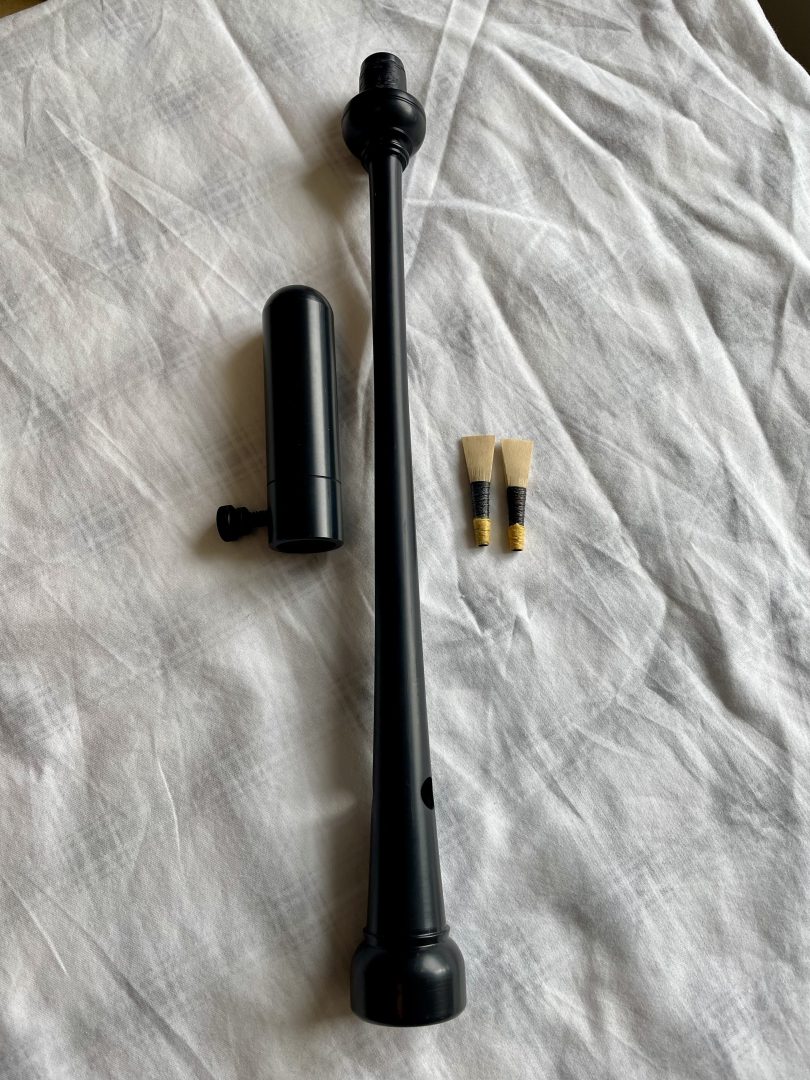Unaltered polypenco Colin Kyo chanter, complete with chanter cap and 2 unplayed medium chanter reeds. We all know these chanters-easy to reed, extremely comfortable with nice hole spacing, and pitches 478-482 with little effort. I have two, and just need one! $210 Canadian complete with free shipping in Canada. To my American friends, I am unable to ship to you at this time unless you have family/friends on the Canadian side of the border.