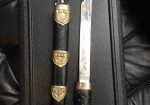 Old dirk, don’t know too much about it. I think it’s more of a costume quality. It looks great with No. 1 or other Highland Dress. Not sharp. Comes with a new leather frog I purchased to attach it to a belt. This thing could be cleaned up a bit and one piece on the scabbard is a wee loose but can be fixed easily. $40 and I’ll pay shipping, shipping only to the USA at this time. Thanks for taking a look!