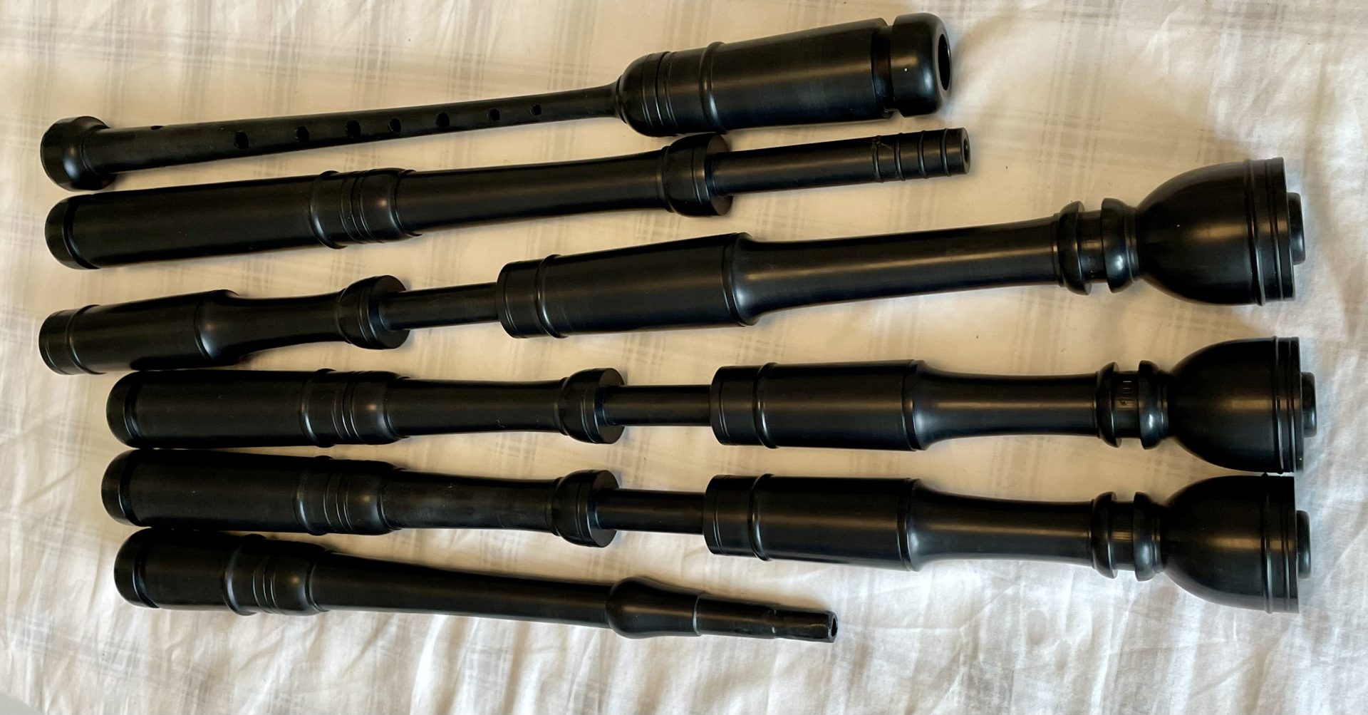 Like new condition Dunbar polypenco P1 bagpipe, with chalice tops and hempless, o-ring seals. Complete with unaltered original chanter and little mac valve in the blowpipe. These bagpipes are virtually indestructible, are great for students and foul weather, and are made with Henderson style bores. Easy to reed and sound great. $540 Canadian including shipping in Canada, or for my American friends, $540 + your tariff of $60 for a total of $600 Canadian (about $430 US)