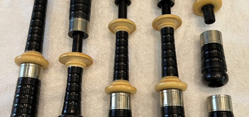1903-1910 ivory and nickel Henderson pipes. Beautiful condition. Rarely available for sale. The true holy grail of bagpipes