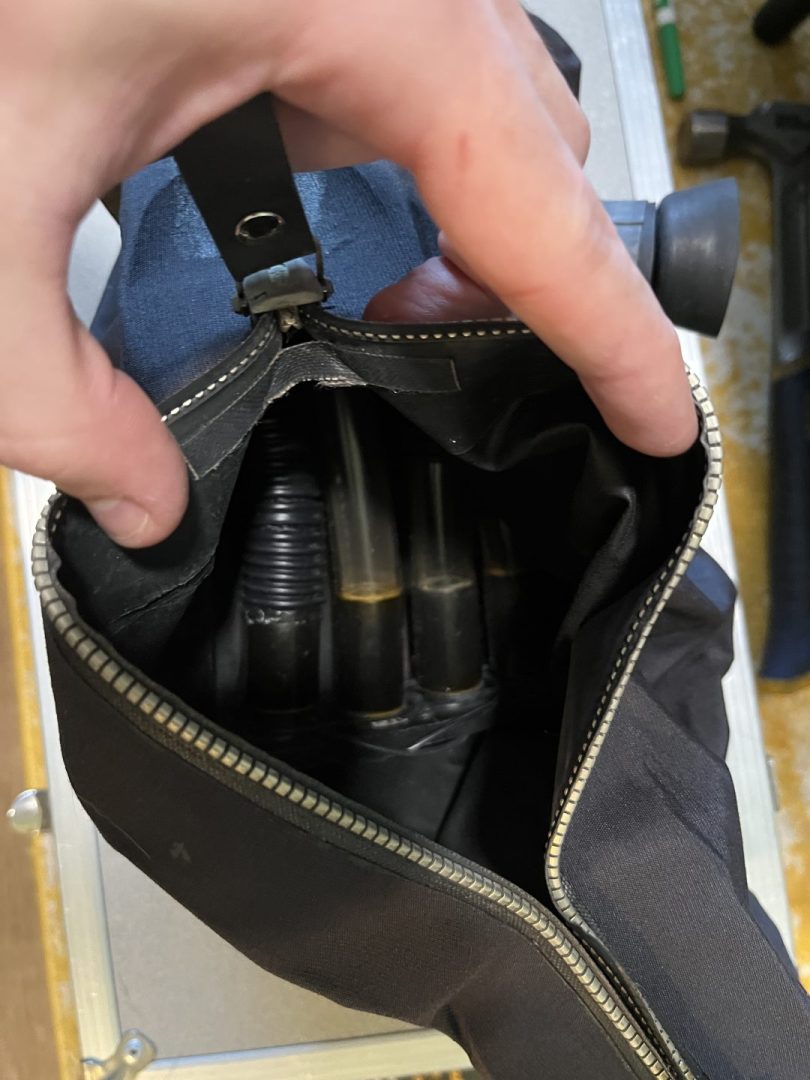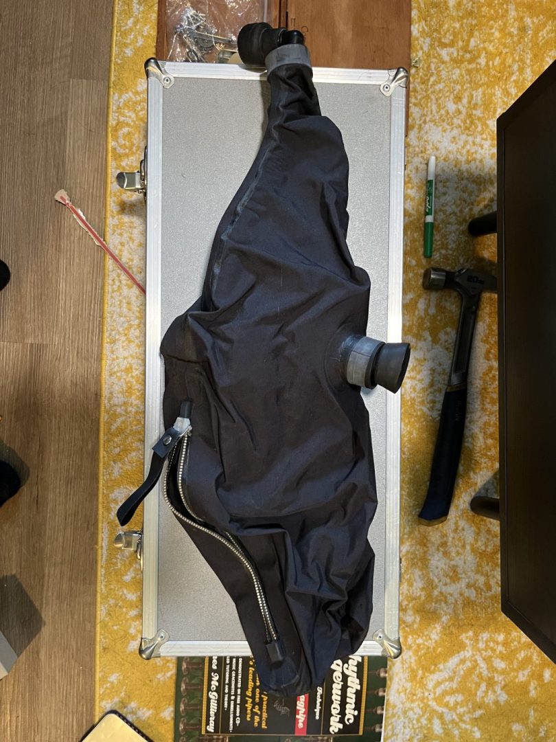 This set comes in a silver, padded, hardshell bagpipe case. Included is a Gibson Polpenco chanter, Gibson Polypenco adjustable blowpipe with imitation ivory mount, Shepherd Regulator bag with tone enhancers, black bag with red fringe and red silk cord. I am also including a Gibson Polypenco practice chanter.