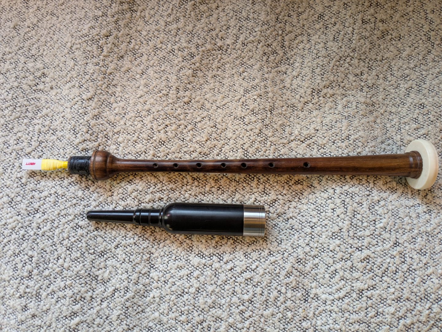 Up for sale is a Gibson long practice chanter made from Cocobolo wood. Top mouth piece is plastic with a stainless steel ferrule. Also has an imitation ivory sole. Comes with one Abbott reed.