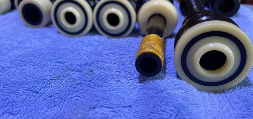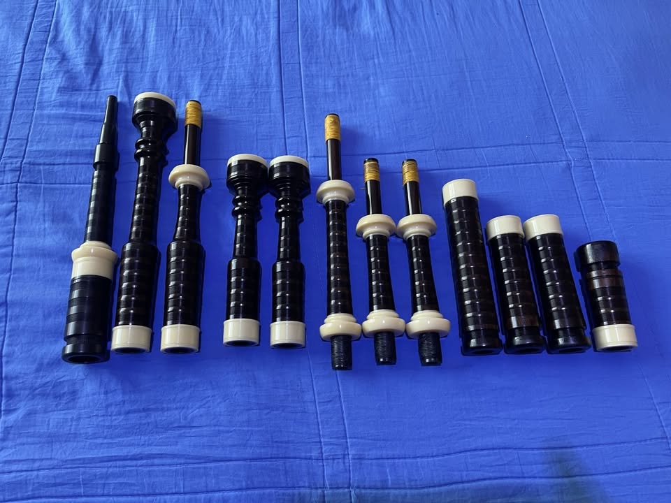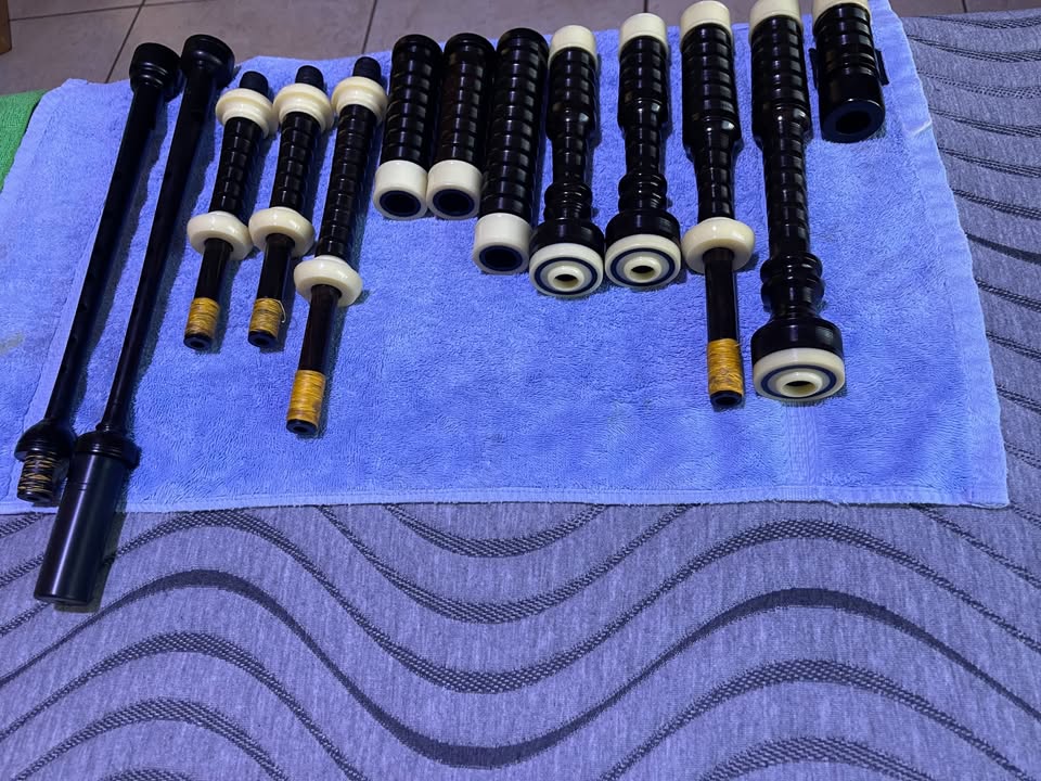 Re-posted. Selling a Gibson set of pipes made in 1998 by its founder Jerry Gibson. Cosidered by many the best era for Gibson pipes. Made in african blackwood mounted in imitation ivory, poly blowpipe and stock. No cracks, no warps. In excellent condition for a bagpipe this old.