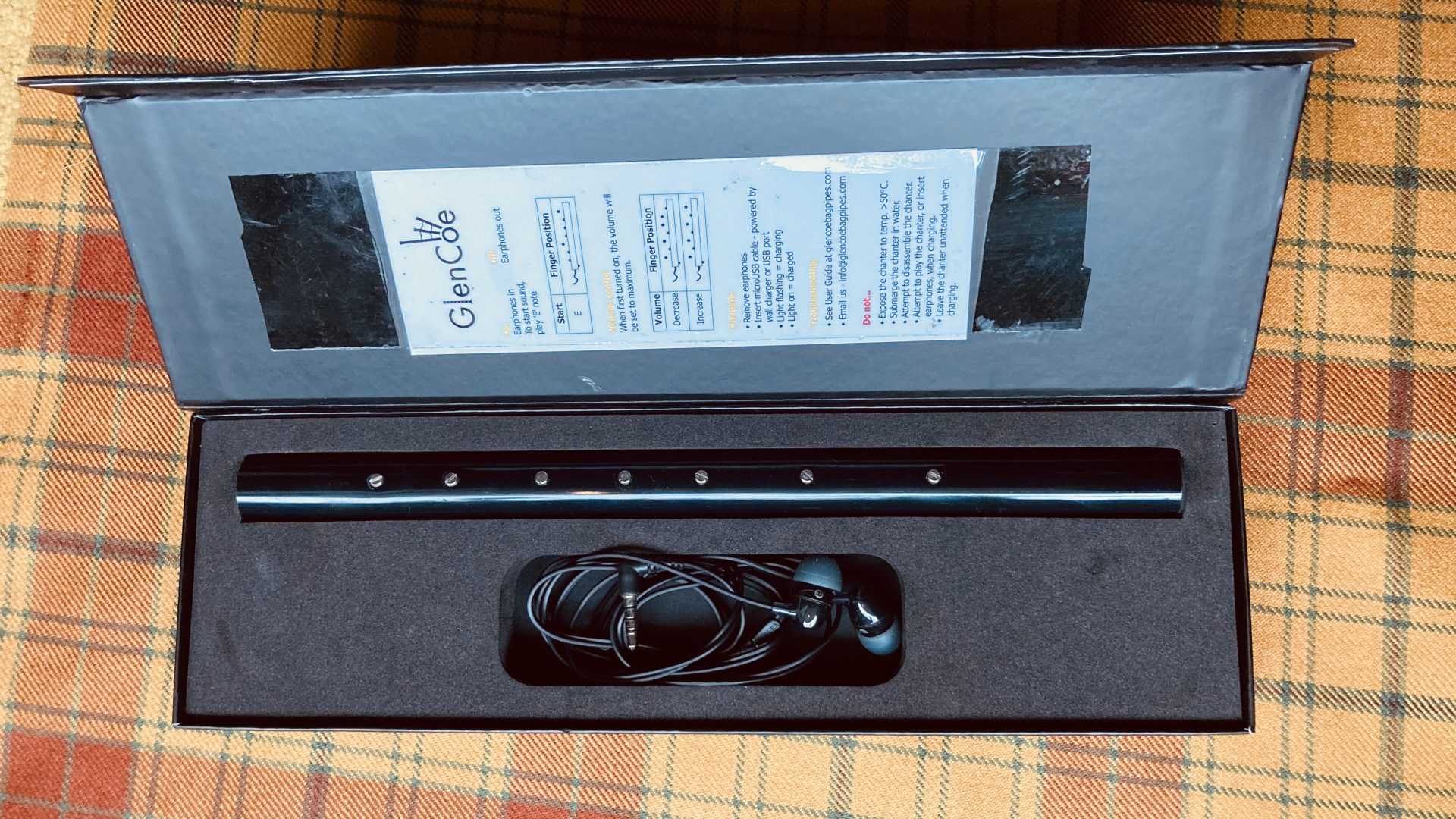 I’m selling my Glencoe chanter. I bought this a year or two ago, and haven’t really played it a ton. It works really well, and sounds good. It’s a nice way to get some practice in on a plane or in an apartment. I taped the instructions on the inside of the lid, as you can see. Great practice tool for new players and experienced players alike.