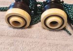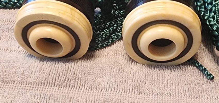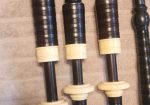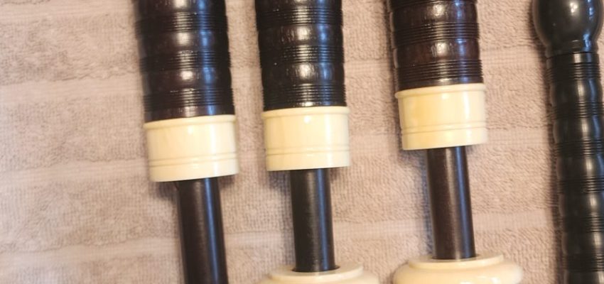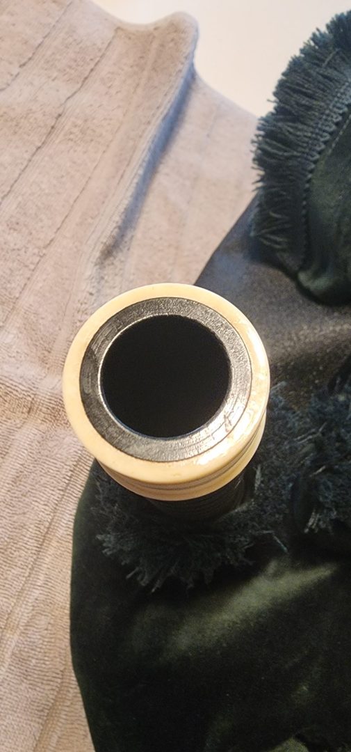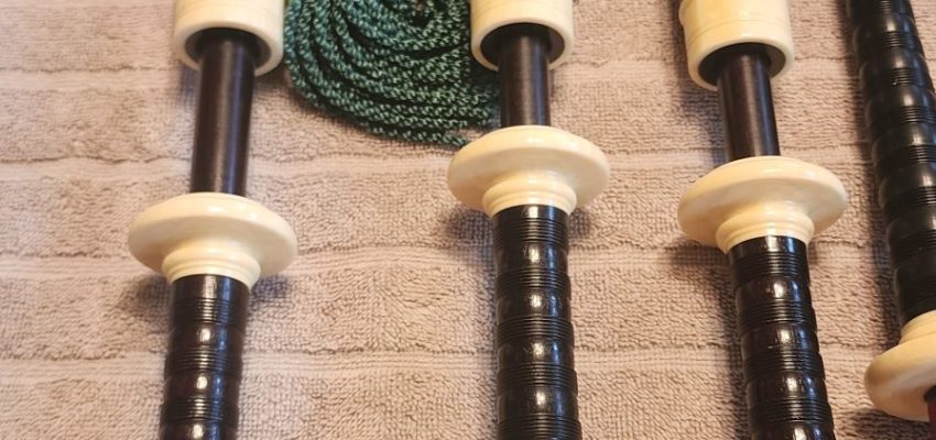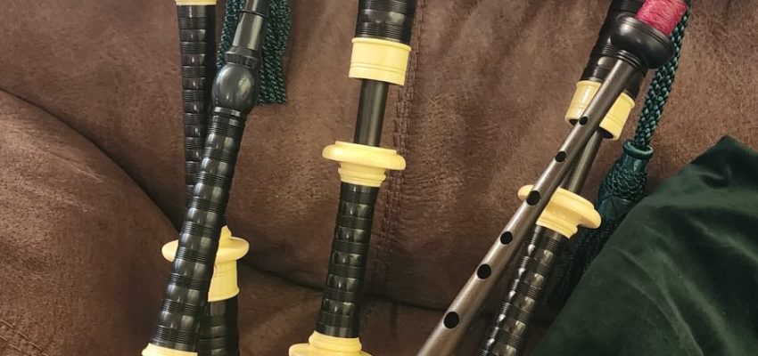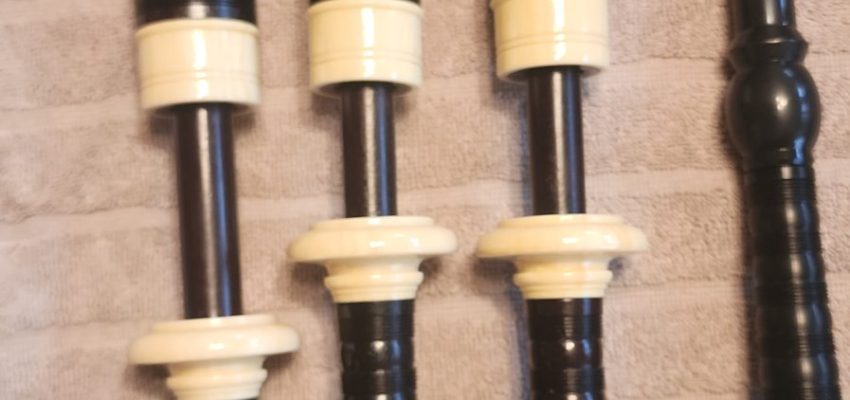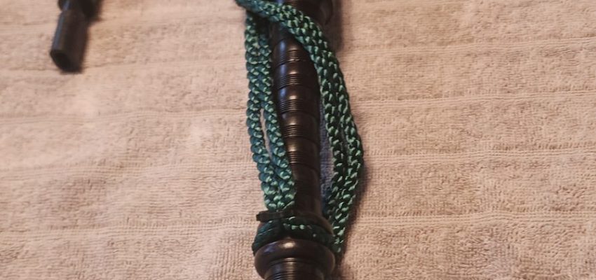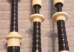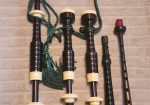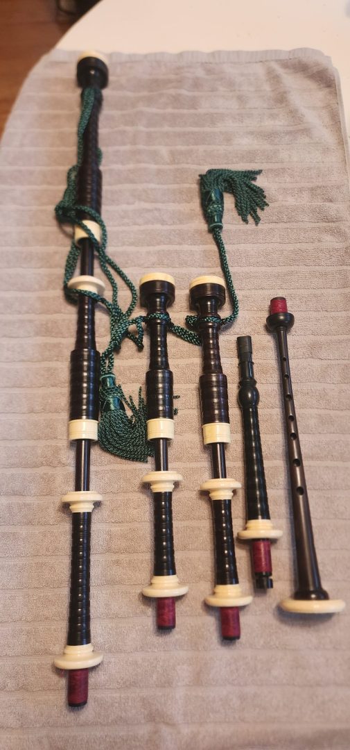 One of the very last sets made by grainger and Campbell before the closing in 1989 fully refurbished by lone star piper in 2025. ABW imitation ivory completely re hemped well oiled set has a brand new bannatyne bag ready to play beautiful set in amazing condition both tenor stocks are poly with the original ferrules mounted original chanter was cracked and has been repaired in refurb buyer pays shipping UPS