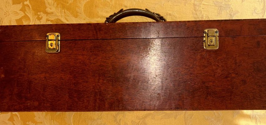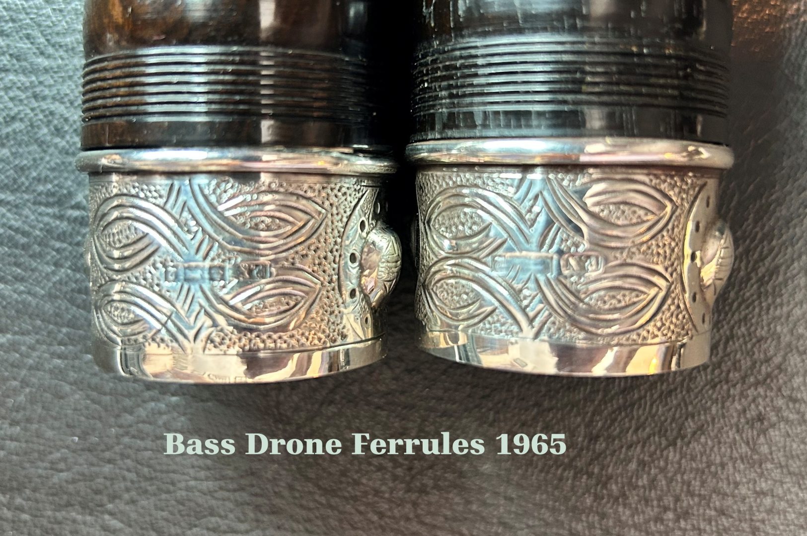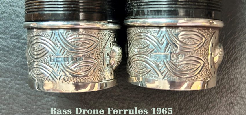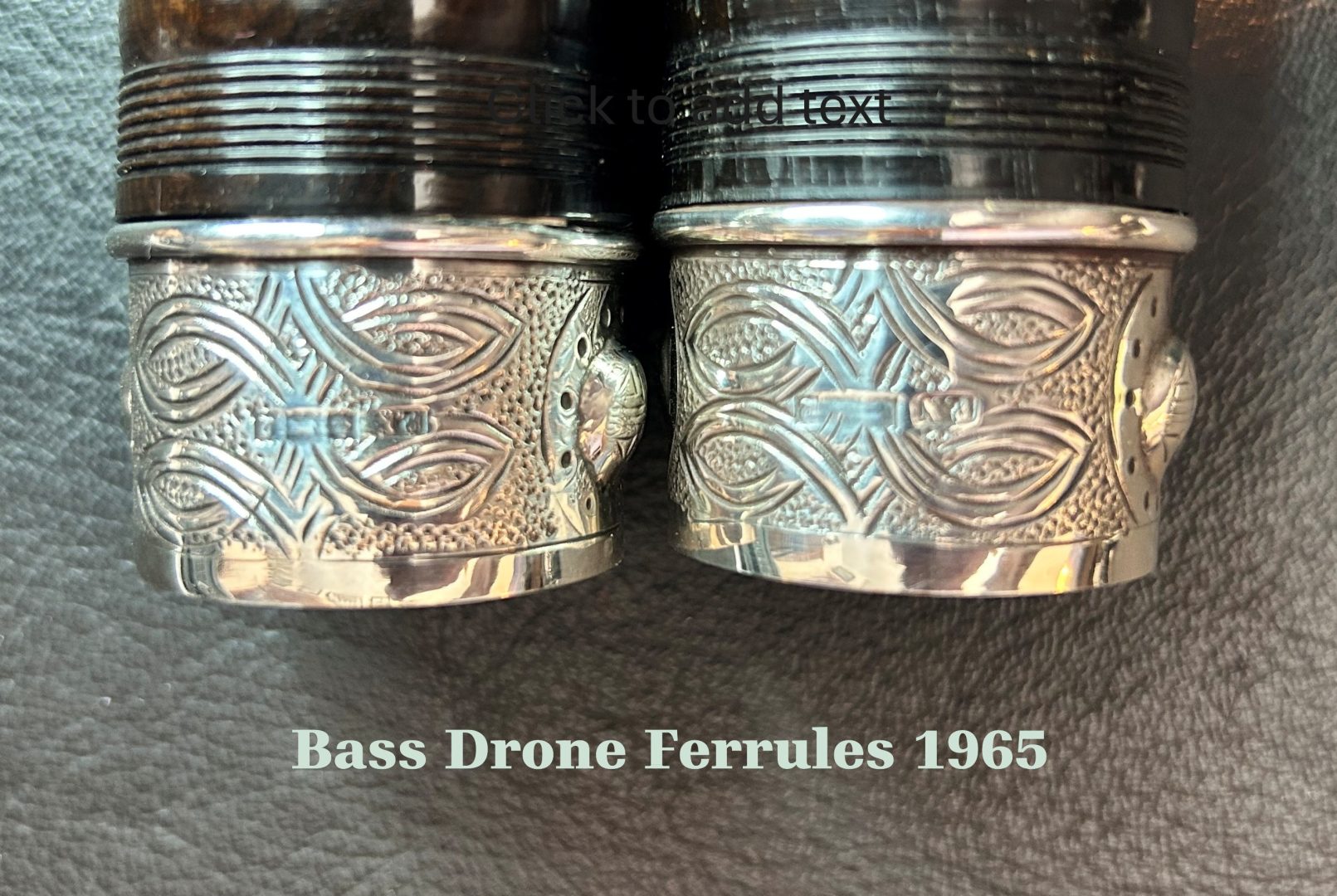 These Pipes were played by my friend Wally in the Anderson Highlanders Pipe Band (Grade B/2) in Los Angeles in the 1970’s. Wally was a high school woodshop teacher, hence the beautiful handcrafted wooden case included. These pipes came to me with an L&M Elk hide bag which appeared to have never been played, is airtight, included, and used for the sound file. The silverwork is hallmarked any where between 1965 and 1972.