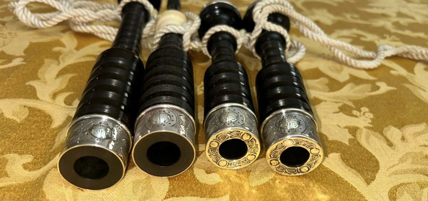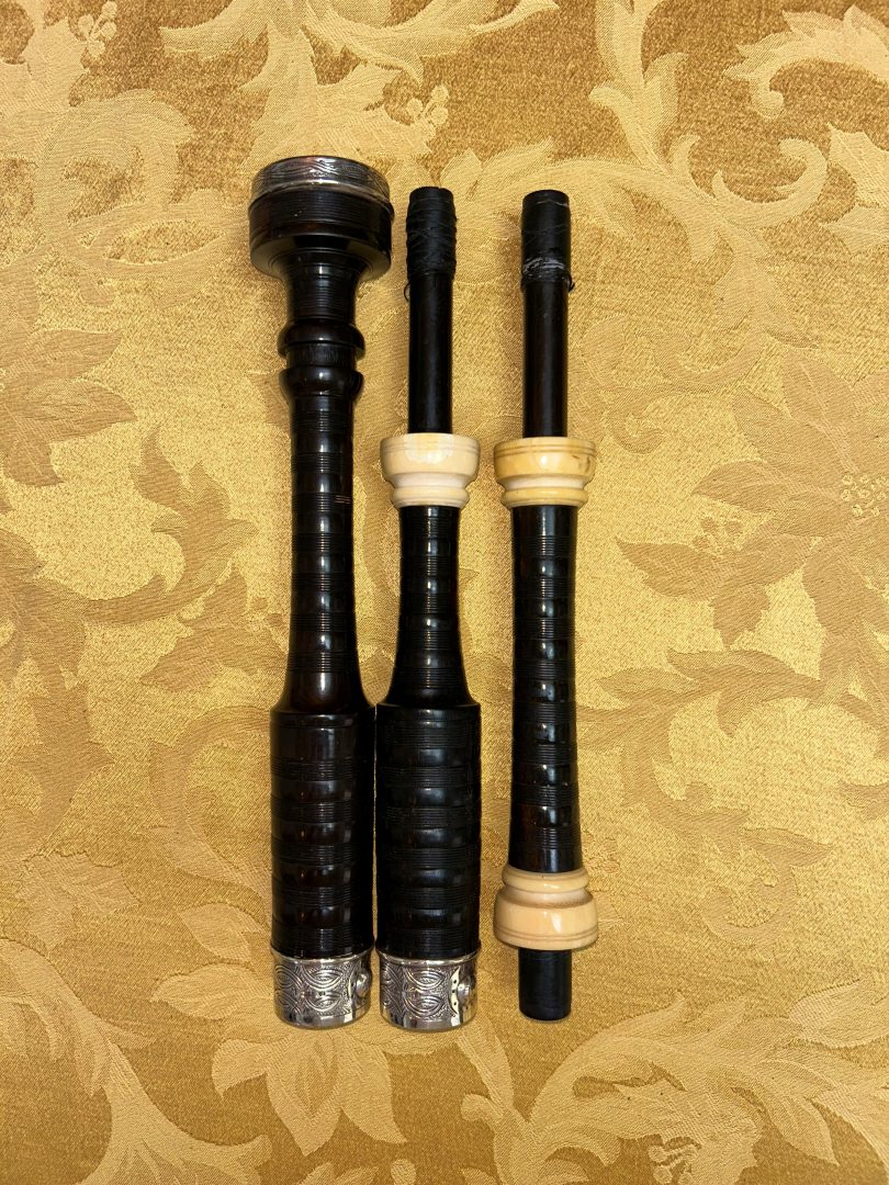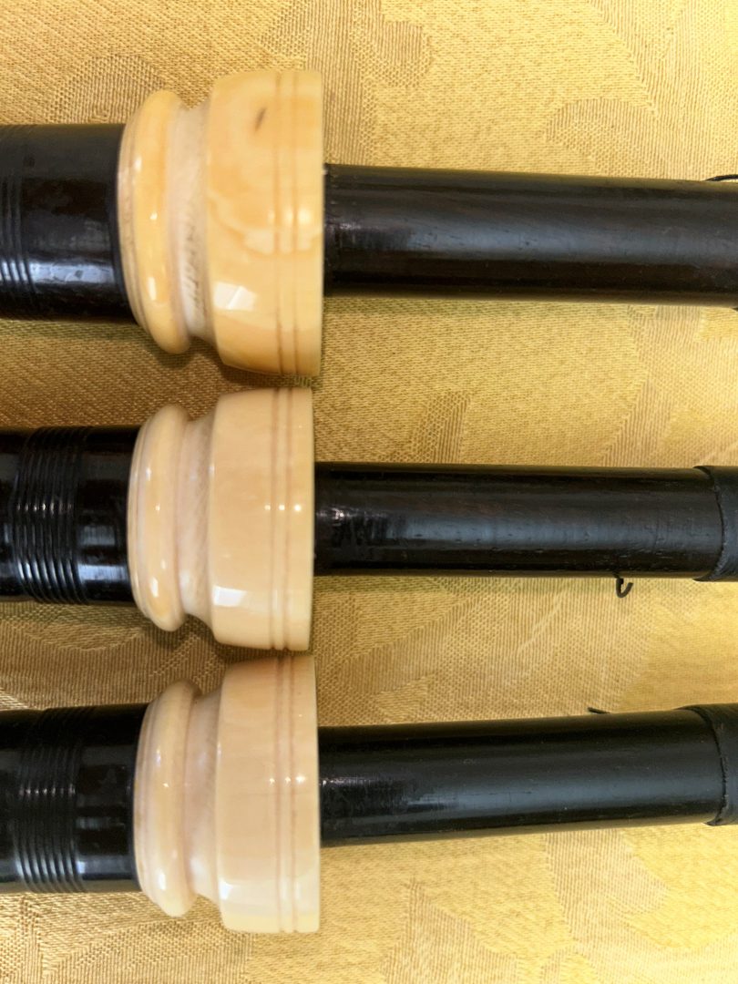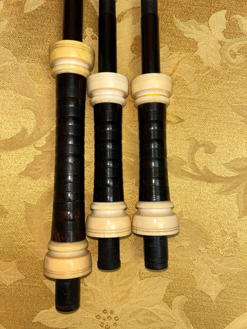 They have been hemped, oiled x3 over 120 days, and can be set up with EEZEDrone, HR3 or Cane, and can include a McCallum MC2, Gandy or MacRae wooden chanter reeded to suit.