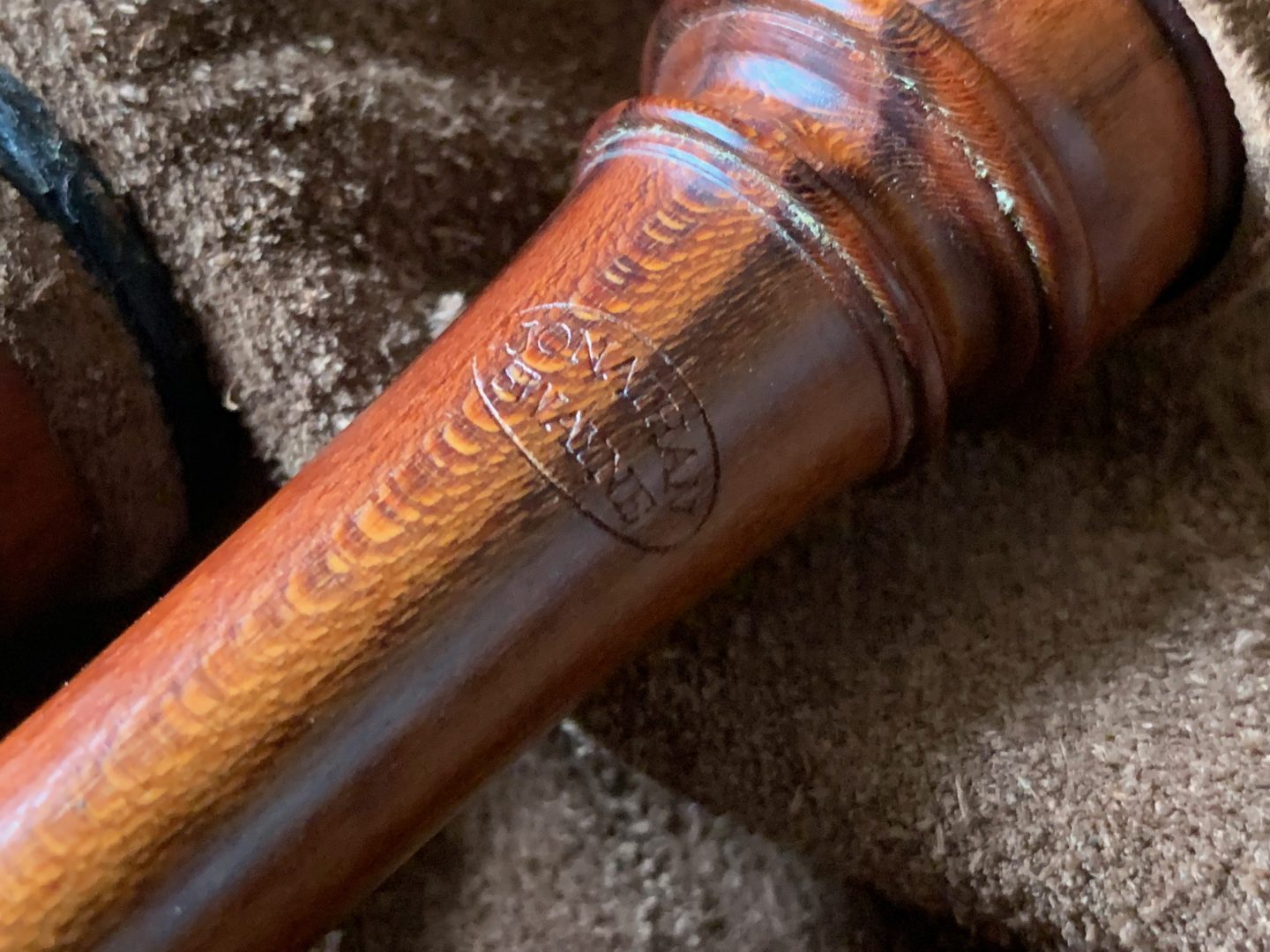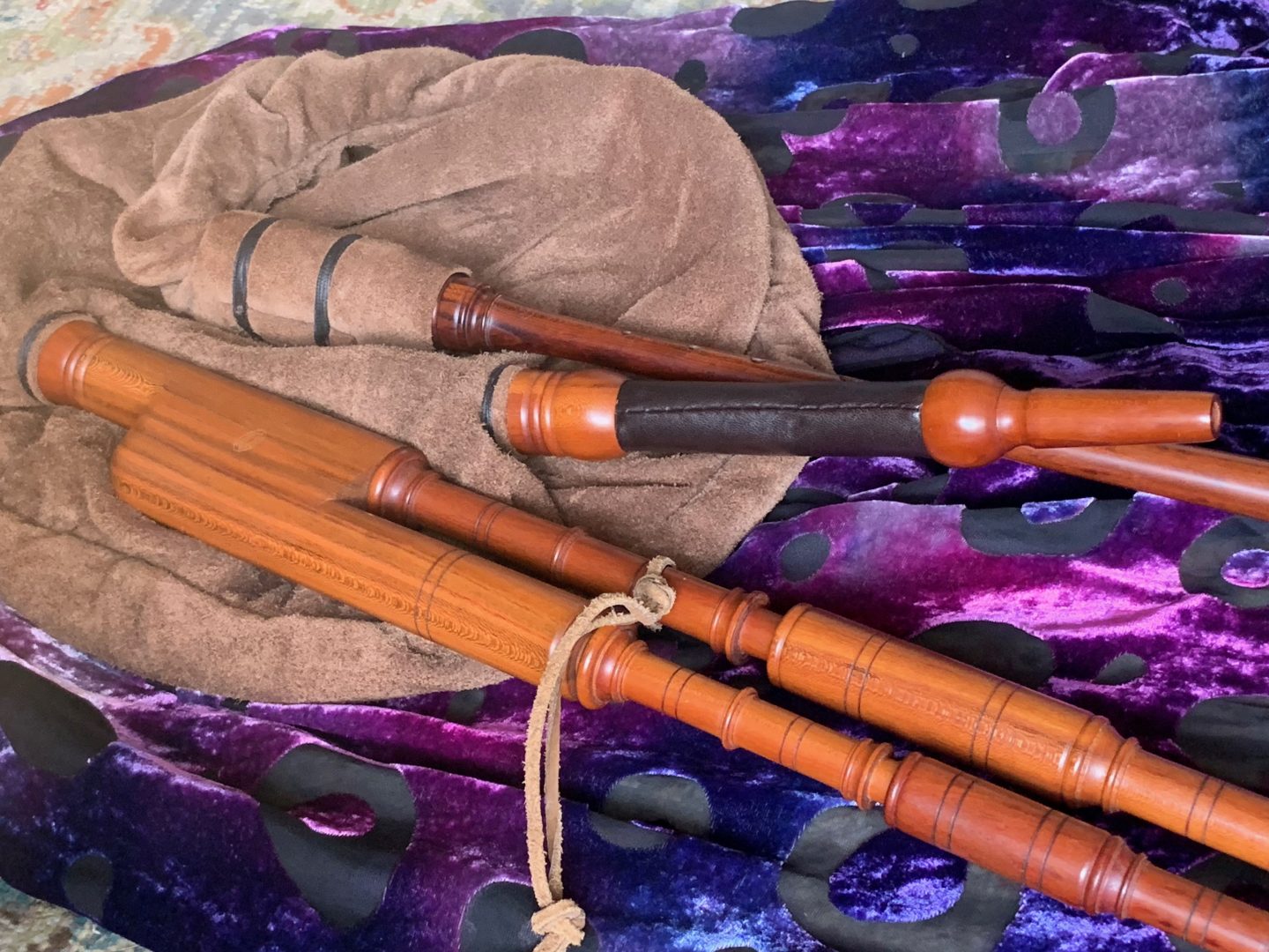 Jon Swayne bellows-blown flemish pipes in A, in plumwood. I’ve been gradually falling away from piping over the last few years, and these beauties are offered practically unused, in perfect condition (see photos).