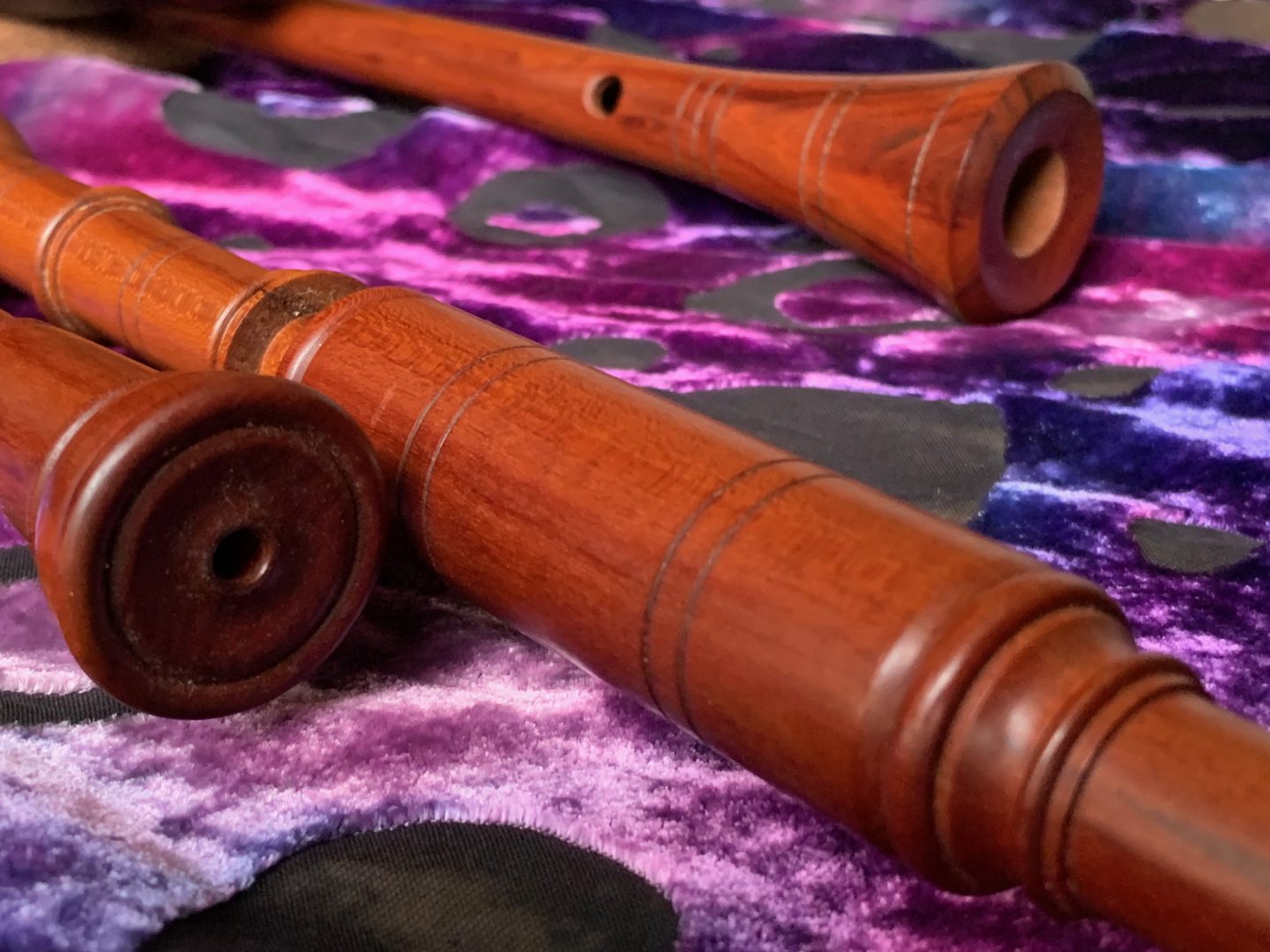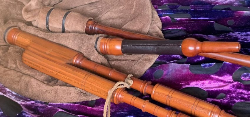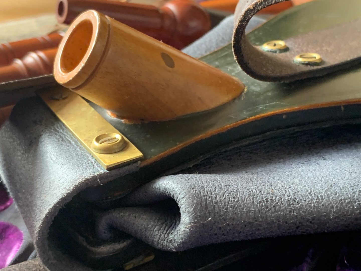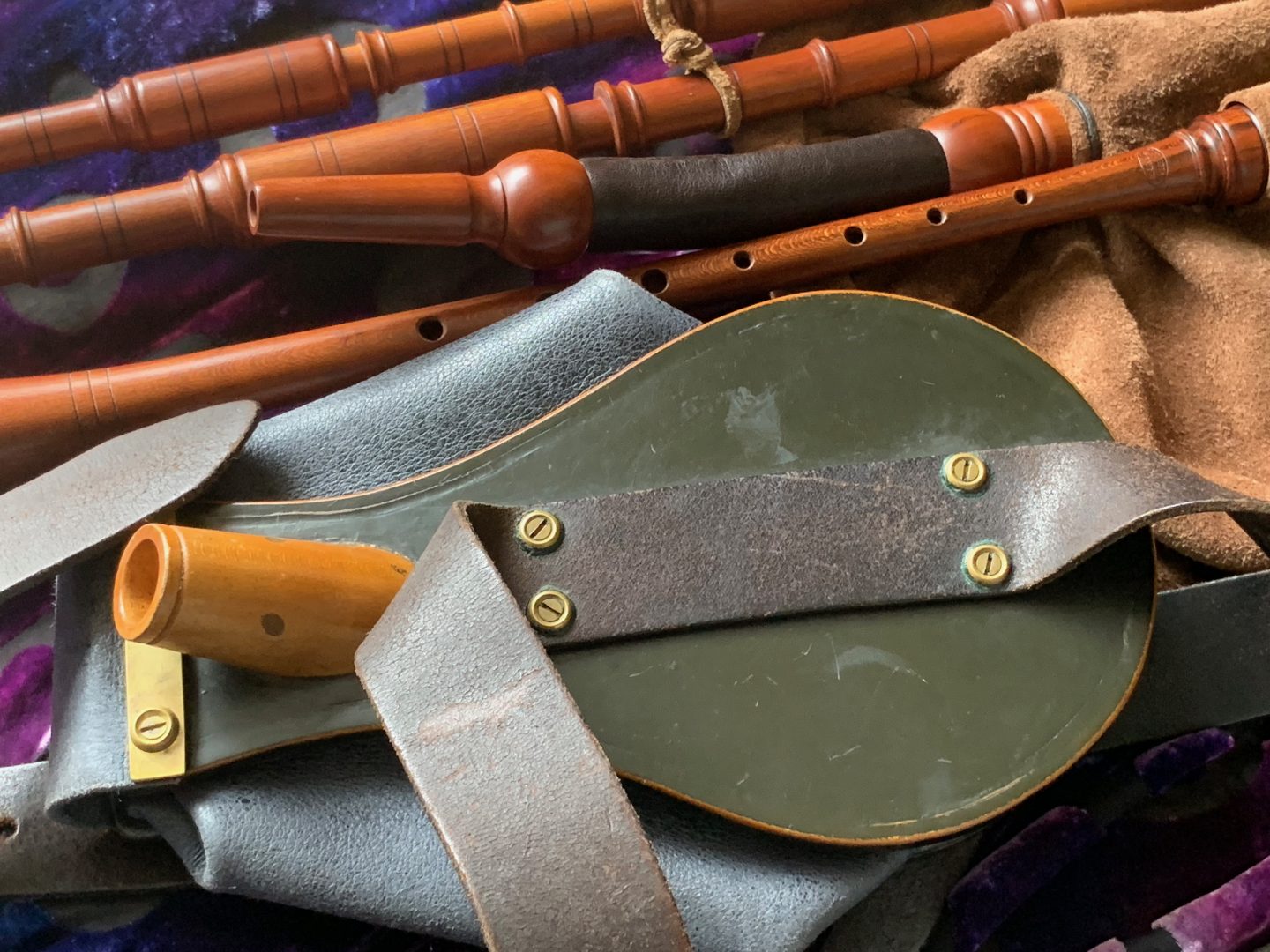 I ordered these primarily for playing for rapper dance and sessions, where there’s limited space, and I was tired of whacking light fittings and other folks faces with drones over my back. The forward-facing drones of the Flemish Pipes makes them very convenient in smaller spaces, and quick to tune. I asked for the key of A, for maximum compatibility in folk sessions in England—very compatible with fiddles and D/G melodeons (which can often handle Amin), while still having a beautiful bright sound. Of course A is a great key for Scottish music too.