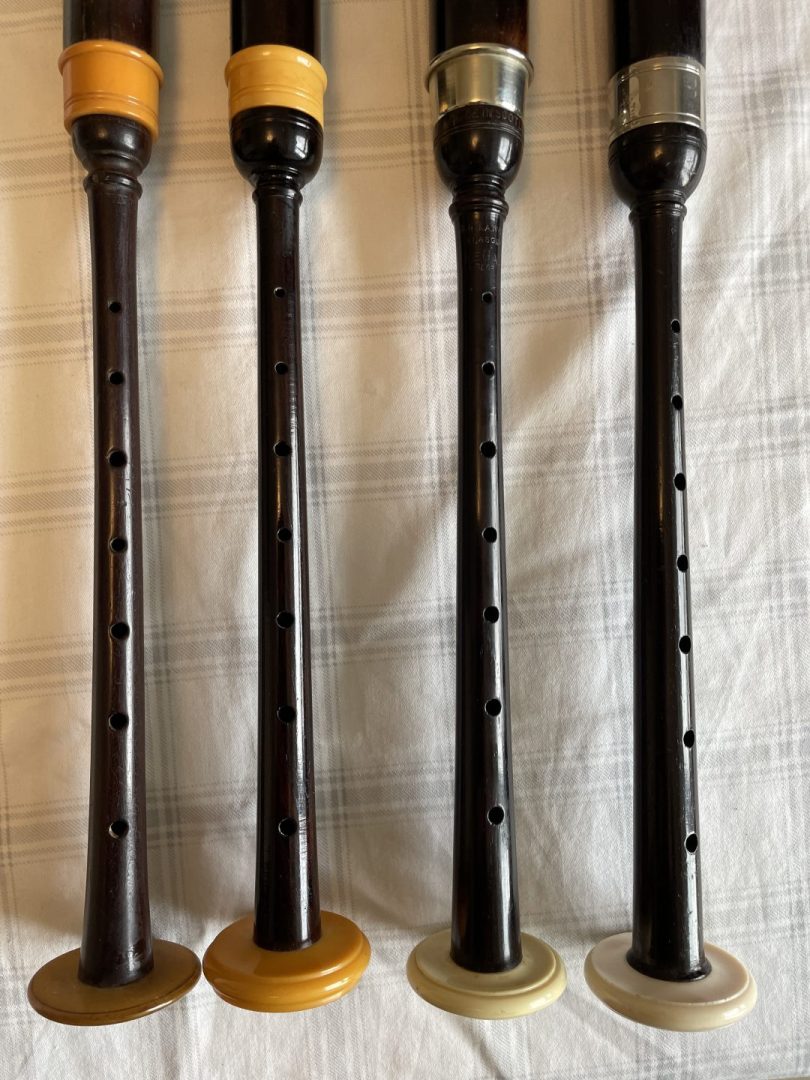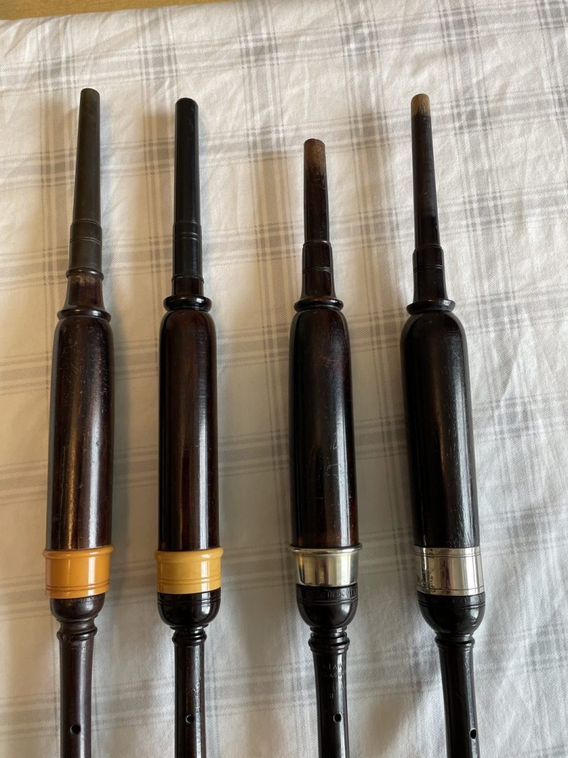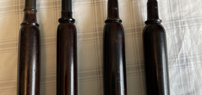 4 vintage blackwood practice chanters, each with a reed so ready to go. #1 is a J Center bottom and likely a Hardie top. #2 is a Hardie, #3 is a Lawrie, and #4 was thought to be a Hardie, but likely a MacLeod. All in playable condition. $90 Canadian each including shipping, or take the lot for $300 Canadian shipped. US pals…add $10 for your tariff on individual chanters. ****CENTER IS NOW SOLD****