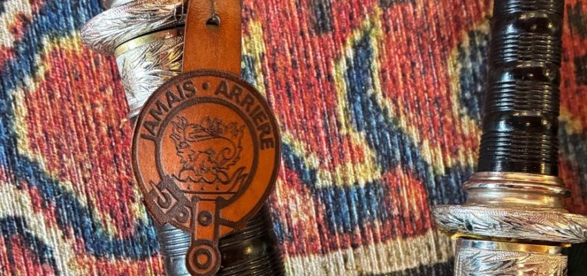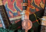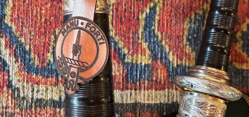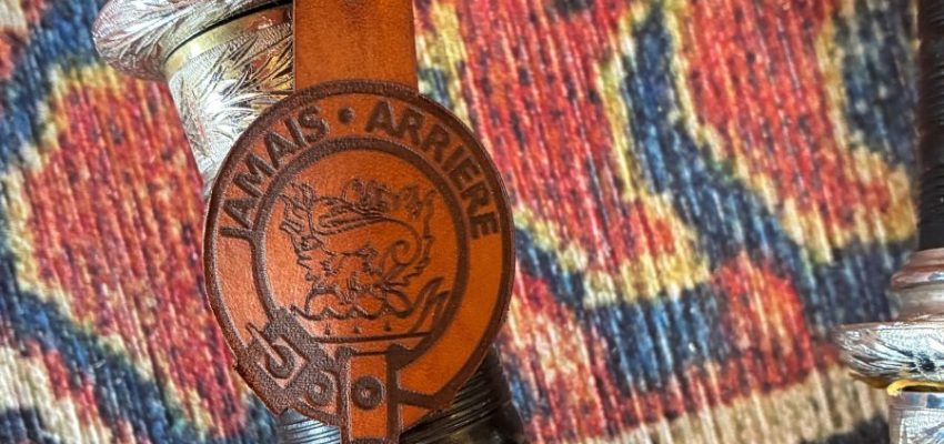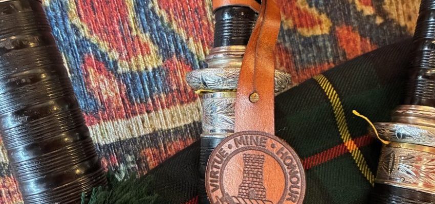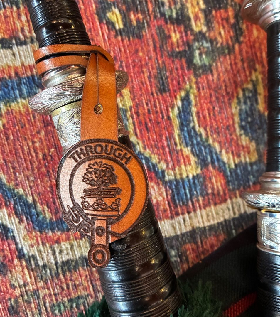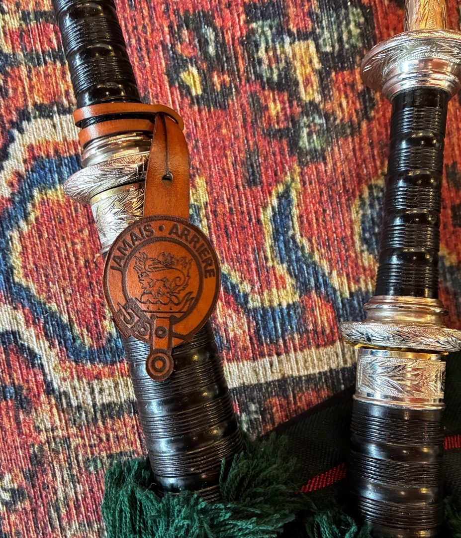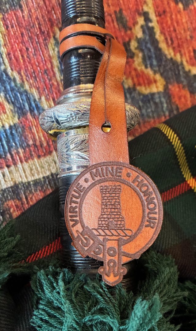 Custom-made leather clan badges for your bagpipe drones. Our drone badges will fit any Highland Bagpipe Drone or Small Pipe Drone. Made using top grain leather, embossed with your clan crest. The drone badges shown are for the Hamilton, Mackay, Douglas, and Maclean clans. The drone clan badges are finished by hand and will withstand rain, sun or snow.