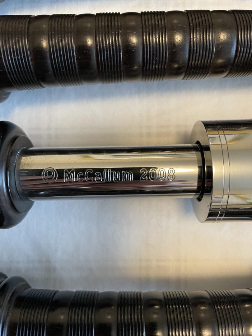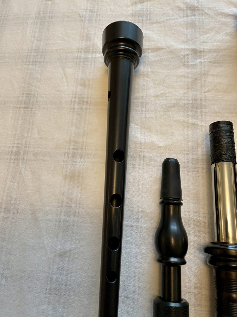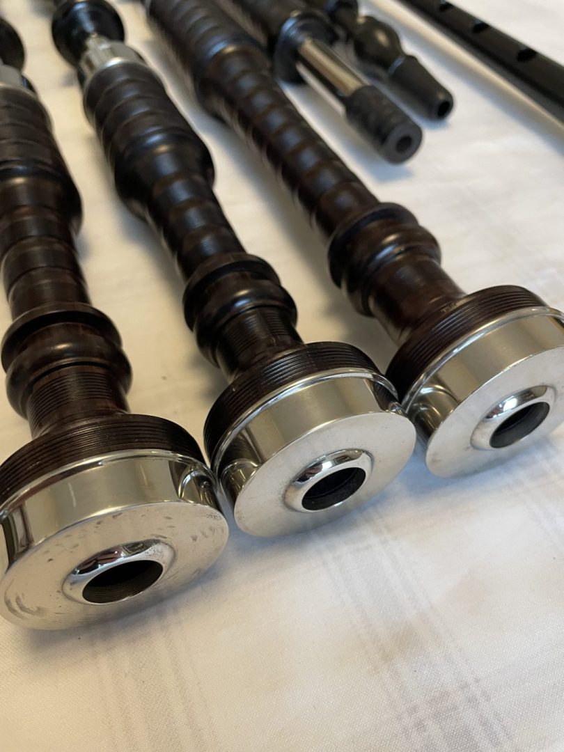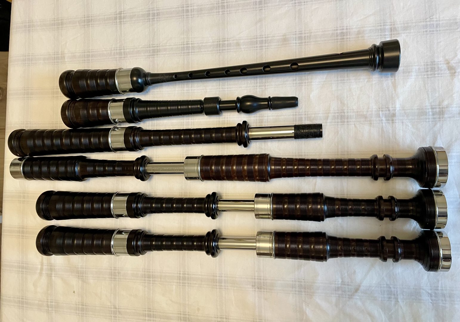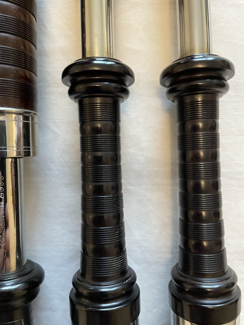 Fantastic McCallum AB0 Blackwood bagpipe, made in 2008. Blackwood button mounts, nickel ferrules, slides and caps, and polypenco adjustible blowpipe. Complete with chanter. No cracks or issues. Played sparingly by a retiring player. Nice and light on the shoulder, and easy to reed. $950 Canadian including shipping and insurance within Canada, or $875 without the chanter. Only shipping within Canada at this time.