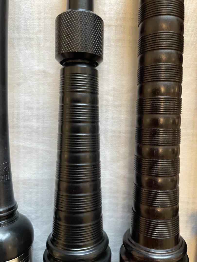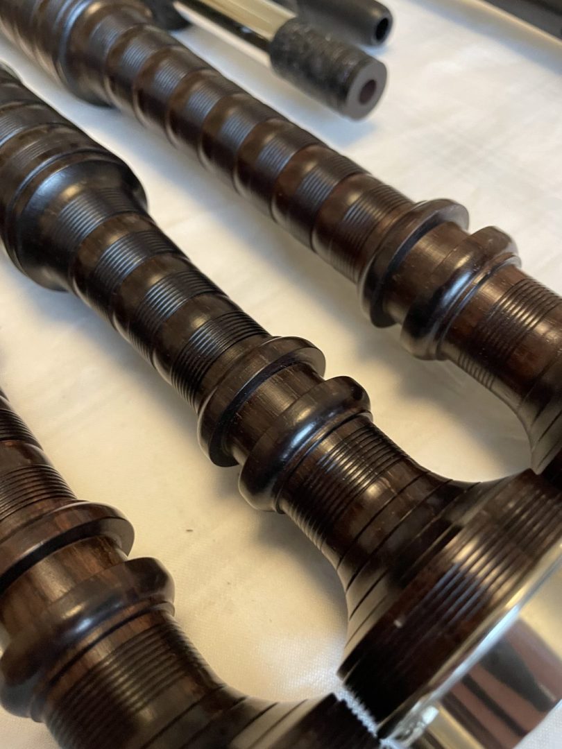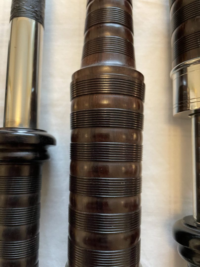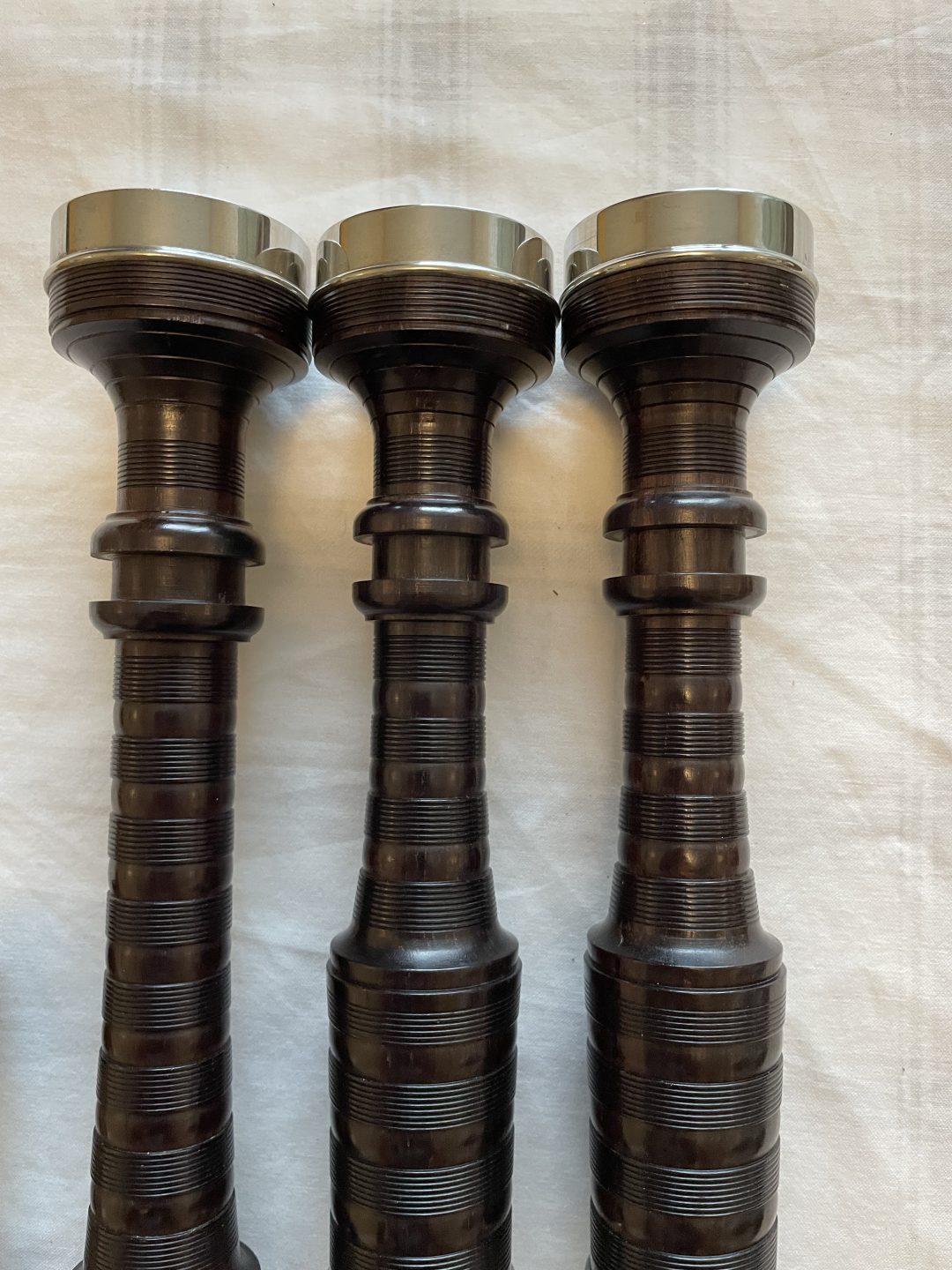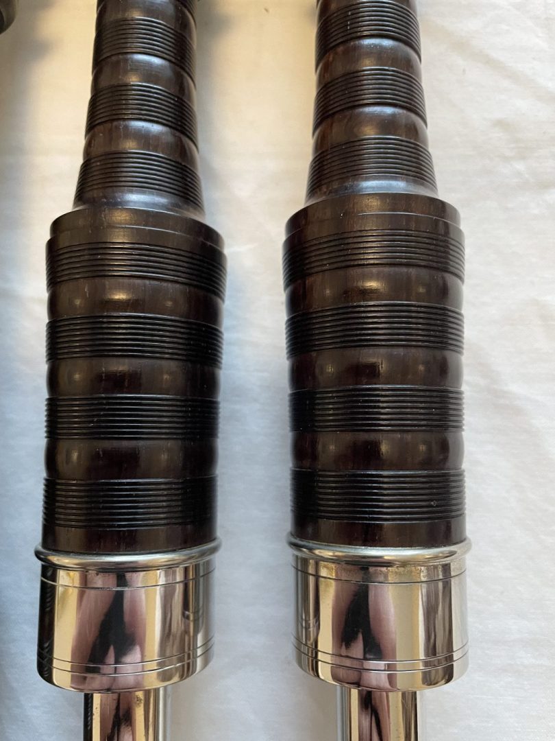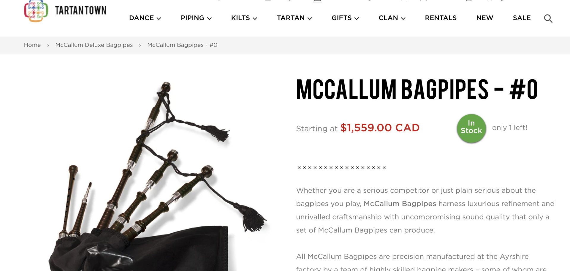 Fantastic McCallum AB0 Blackwood bagpipe, made in 2008. Blackwood button mounts, nickel ferrules, slides and caps, and polypenco adjustible blowpipe. Complete with chanter. No cracks or issues. Played sparingly by a retiring player. Nice and light on the shoulder, and easy to reed. $950 Canadian including shipping and insurance within Canada, or $875 without the chanter. Only shipping within Canada at this time.