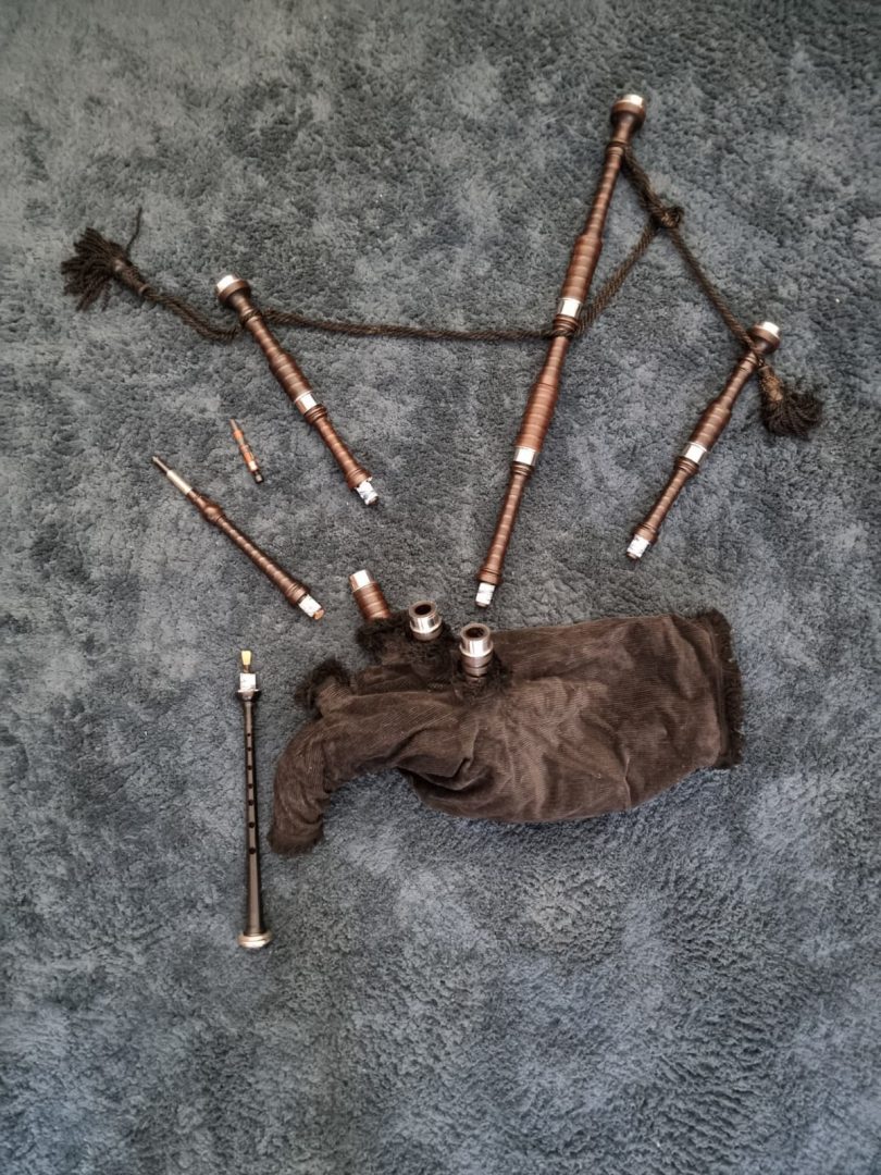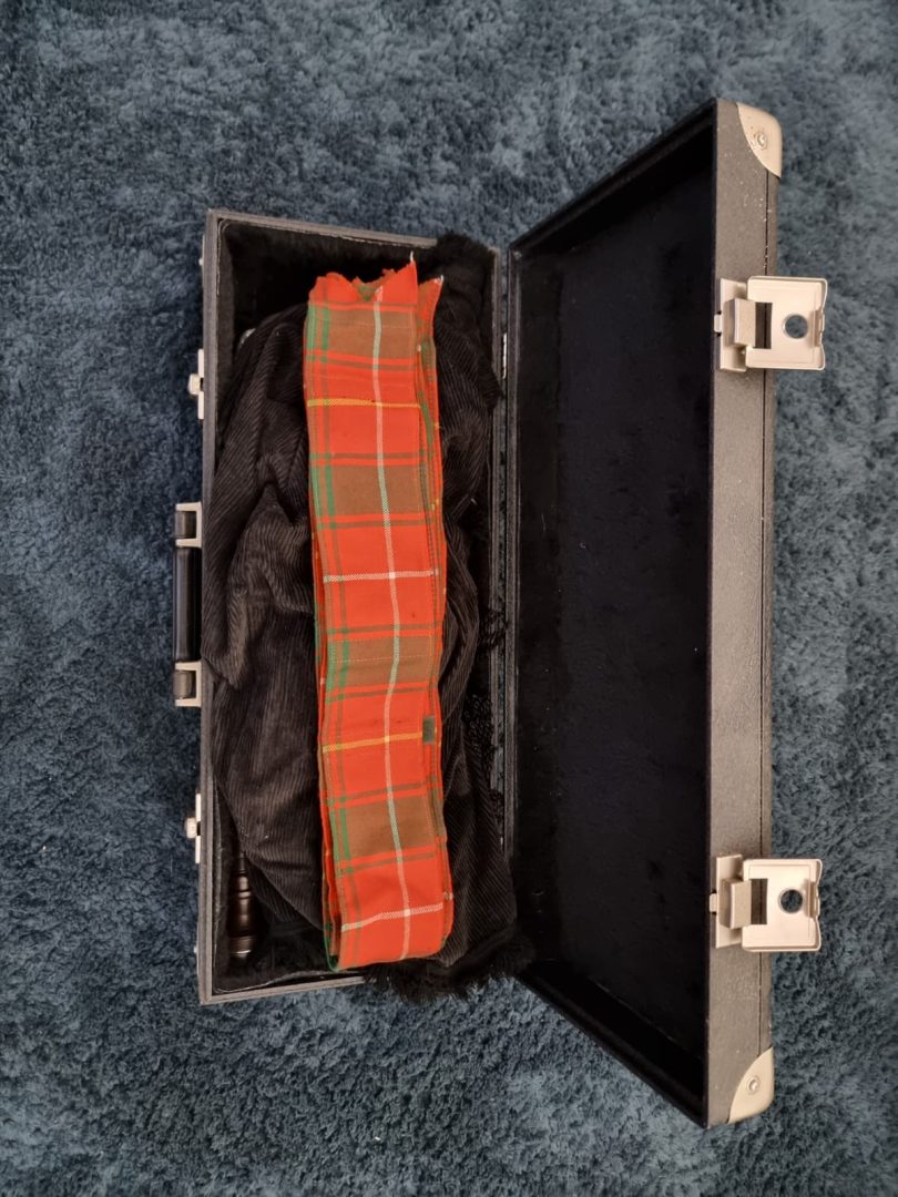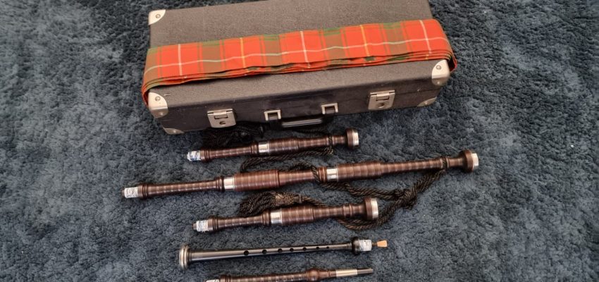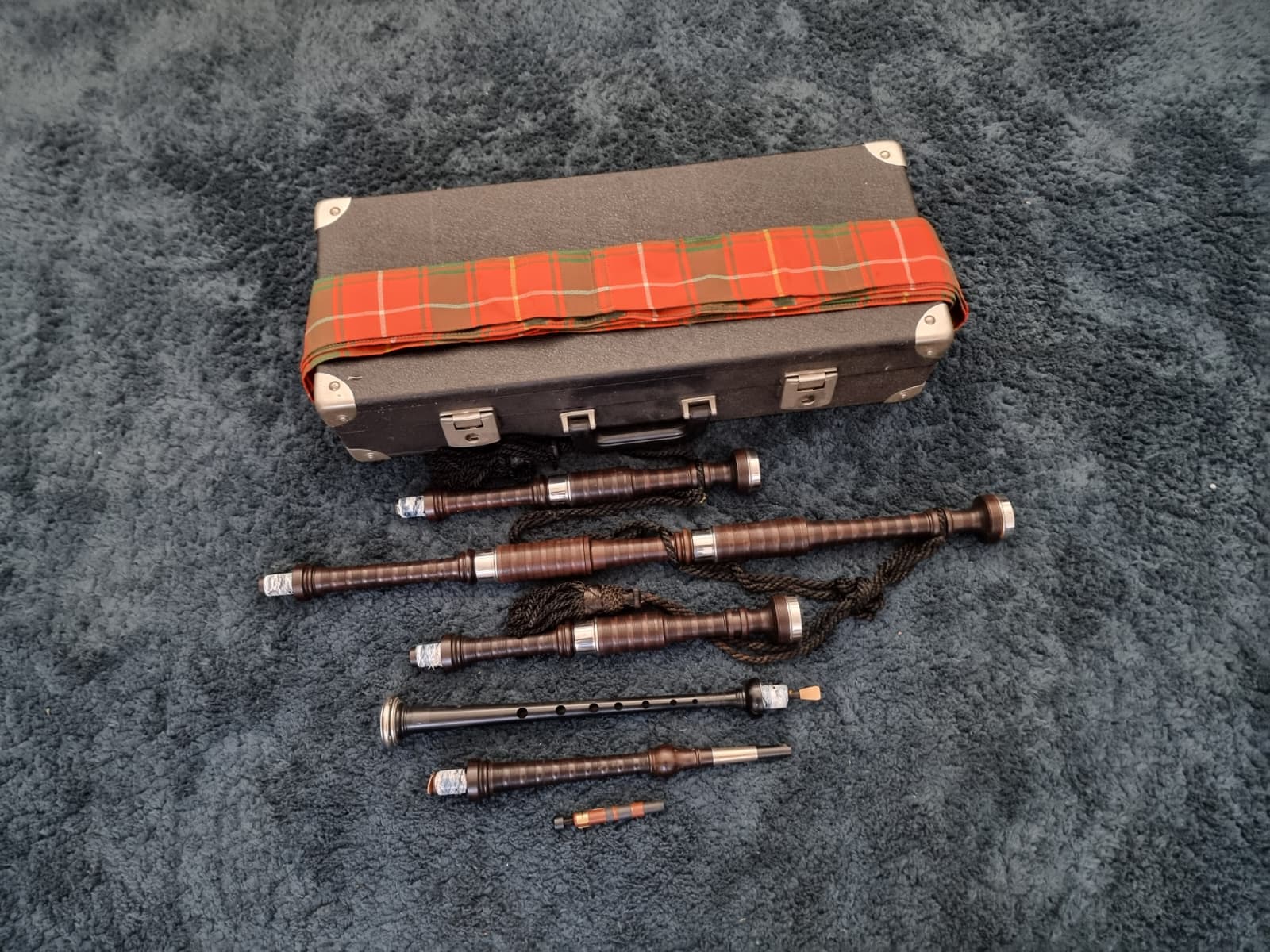 Classic style wooden projecting mounts, beaded alloy ferrules, beaded alloy ringcaps, alloy slides and full alloy mouthpiece, black bag. Solid carry case included.