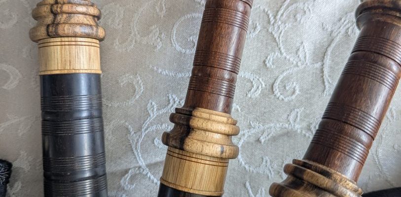 - A beautiful set of Pau Santo and Persimmon, Morrill pipes. I am selling them as sticks and stocks, but I currently have them tied in to a large Gannaway bag. The tenors are built on the bore dimensions of the late 1800’s David Glen and the bass on on a early 1900 Henderson. The sound has a wonderful blend of harmonics and they are light on the shoulder. They are flat combed and the wood grain and contrast is amazing. The blowpipe stock is a split stock. Like new, no cracks. The price is for sticks and stocks and please, only the lower 48 and PayPal.