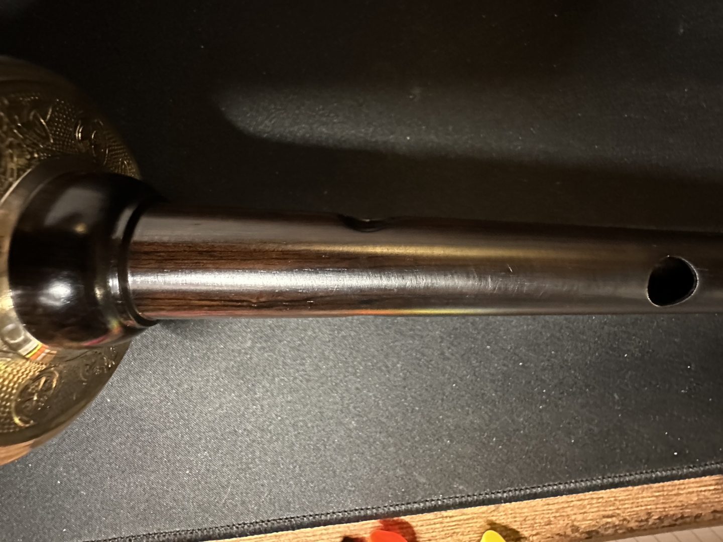 PH Blackwood pipe chanter w/ .925 hand-engraved silver sole. Excellent condition, no cracks or damage. New $1k+.
