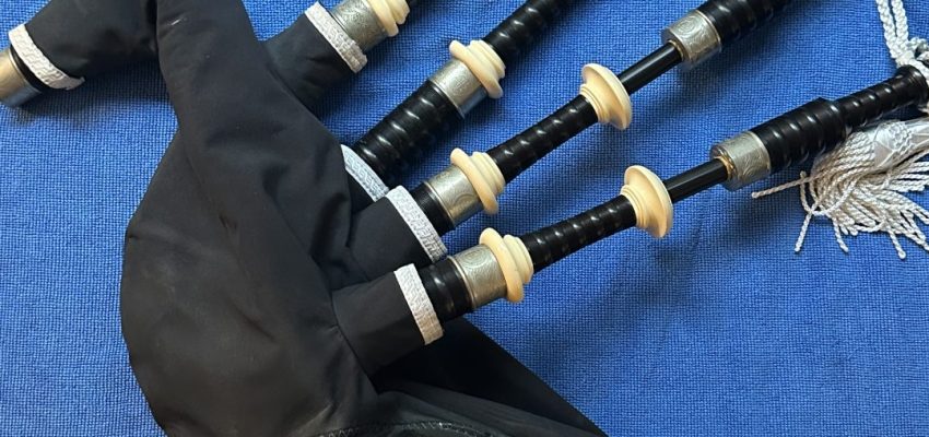• Peter Henderson Blackwood bagpipe set (engraved nickel)