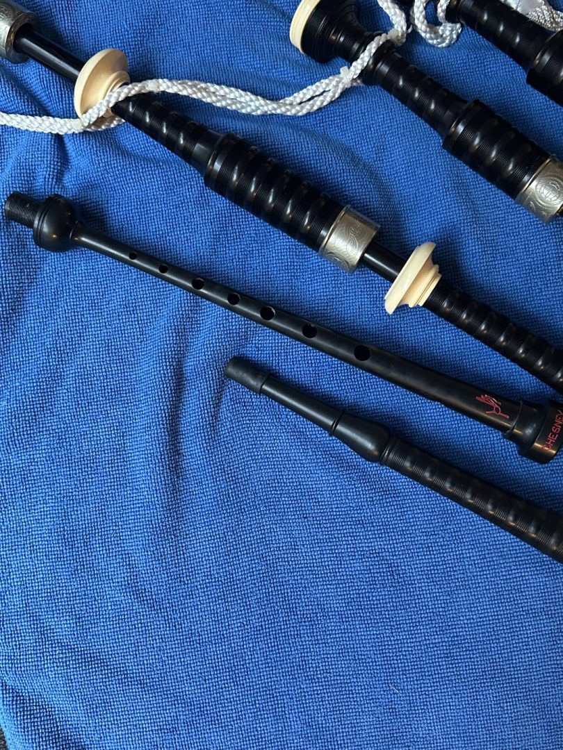 P.H. Limited edition w/ ex small Canmore bag. P.H. Blackwood chanter with silver hand engraved Celtic sole. P.H. Bag cover w/ grips. Comes with 10” MaxiStick and matching split stock. Includes original blowpipe and stock. Ezee drone reeds. R.G. Hardie deluxe navy backpack case. All the extra supplies you need to maintain pipes. Extra reeds (drone and chanter), drone corks, bore swabs, etc. Multiple sets of chords and bag covers (white, green, navy, red/white/blue), plus much more. Will ship within us. Buyer pays shipping.