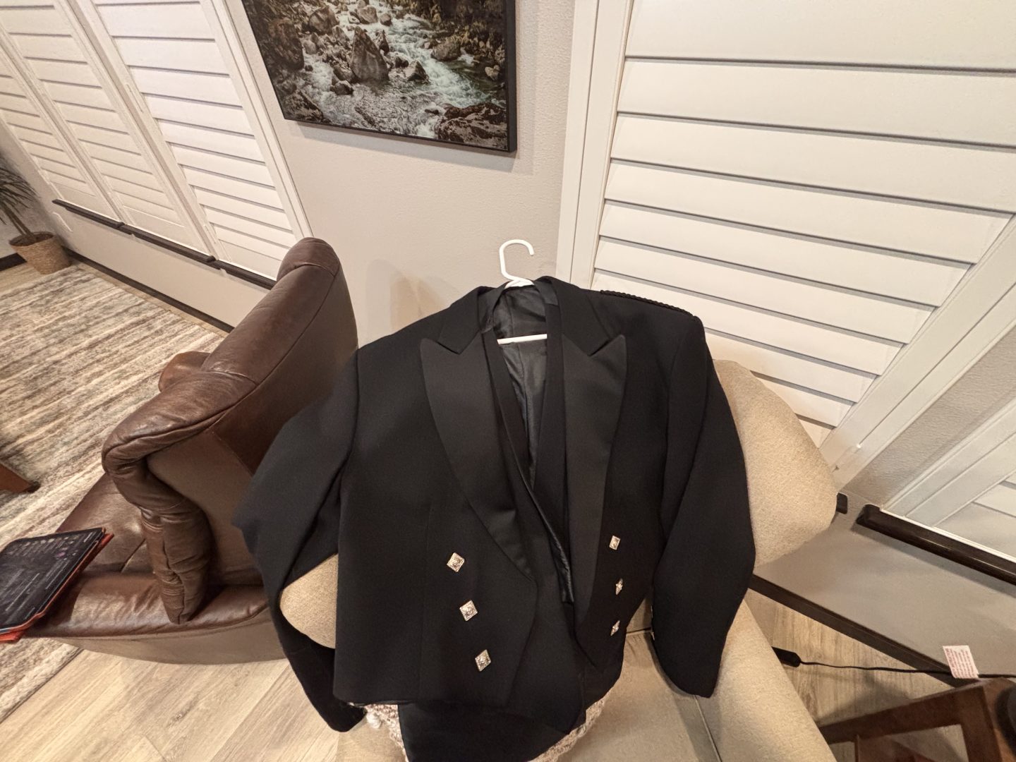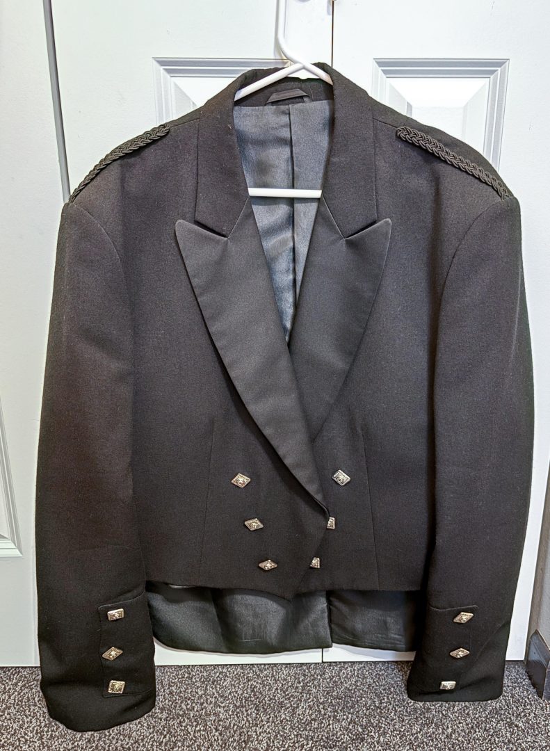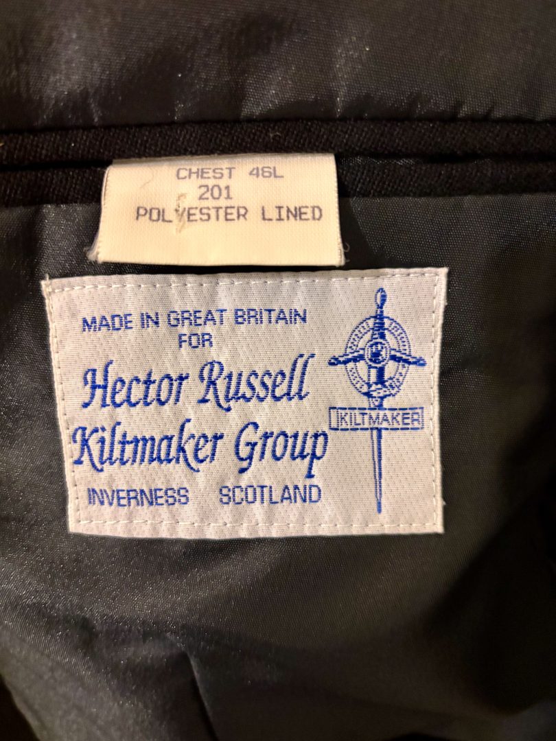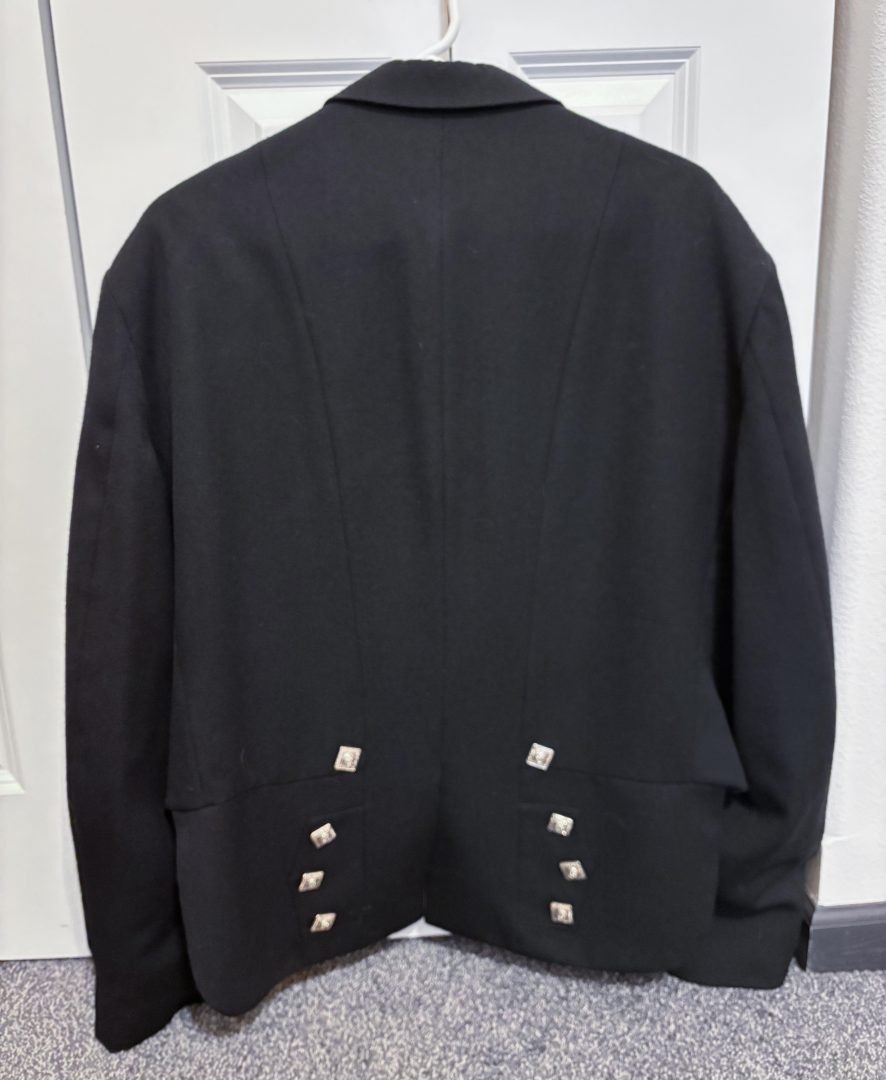 Beautiful Prince Charlie Jacket and Vest in a size 46L. Both are made from pure new wool and are in excellent condition with no visible tearing or wear. Items were made in Great Britain for the Hector Russell Kiltmaker Group in Inverness Scotland. I simply no longer have a need for this set as I have two other uniforms for performances. I will ship in the most expedient method requested but the Buyer is responsible for all shipping costs. Please contact me if you have any other questions about these items.