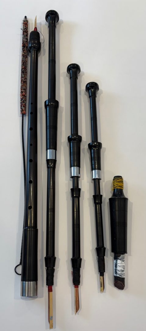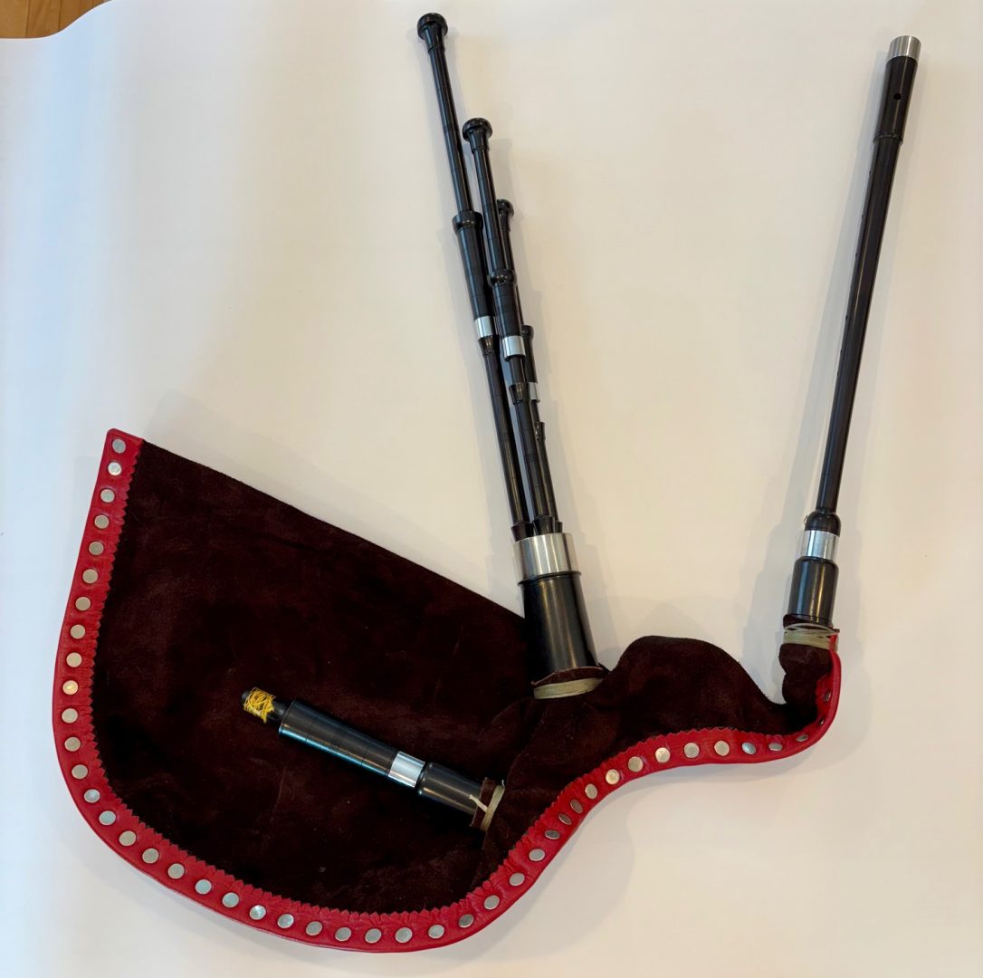 While 25 years old, this set was only used for 6 months. Chanter is in the key of A. African Blackwood. Silver aluminum case. Willing to send additional pictures or zoom-in pictures.