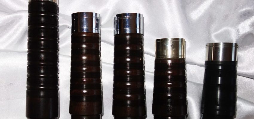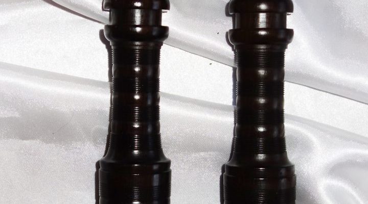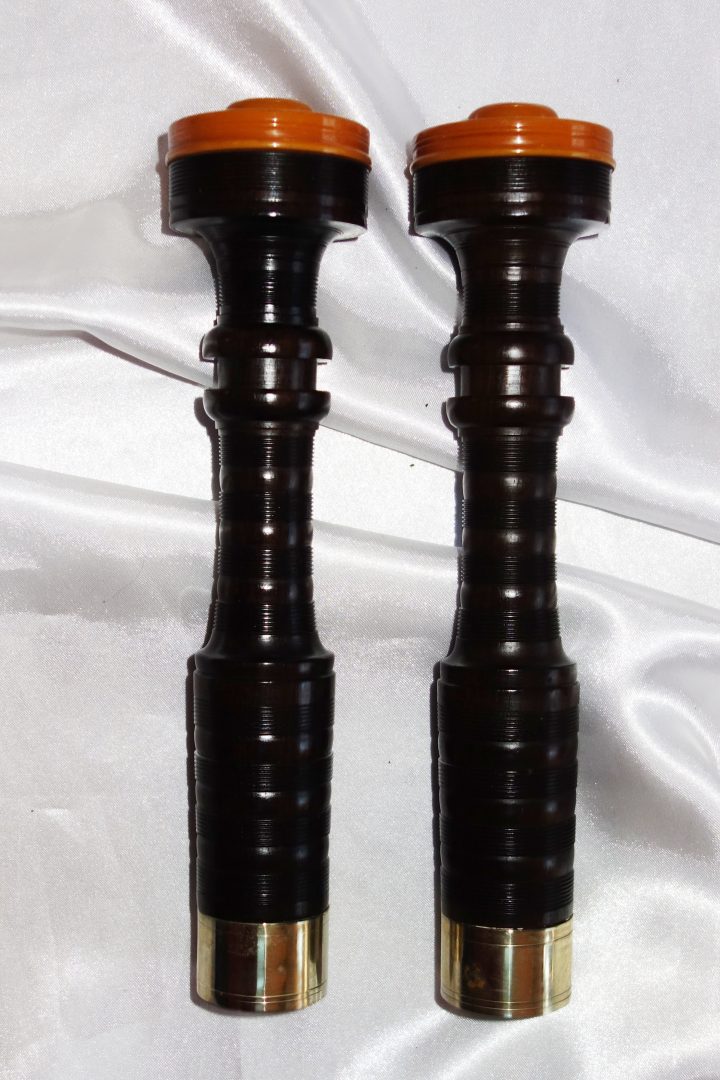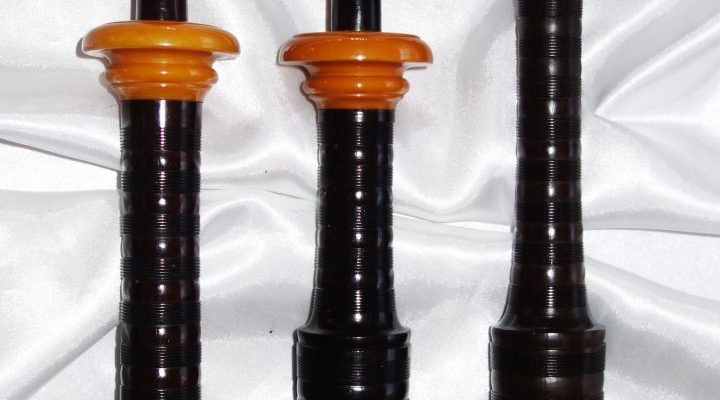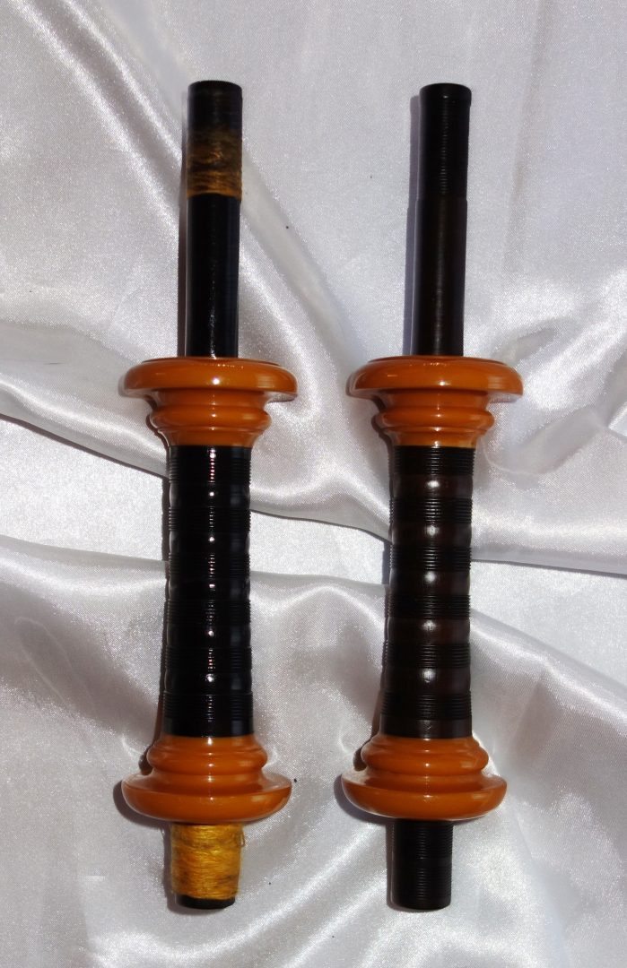 Probably from the 1970s. Missing the blowpipe. Bass stock is not original. Blowpipe stock is flat-combed Delrin. I’ll call it a project bagpipe or a beater for foul weather. I just don’t have the time.