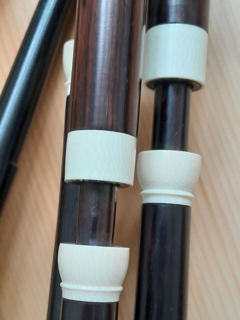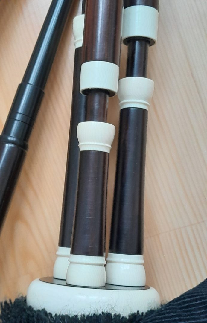 SALE PENDING: RT Shepherd & Son Scottish smallpipes in key of D. African blackwood with faux ivory mounts. Bass, tenor and baritone E drones They have been fully renovated with new Bannatyne pipe bag. New EZ drone reeds, New chanter reed. They are now in superb condition and are a joy to play. Very air efficient and easy to blow. Fully sanitized for new owner. Shipping with insurance and tracking to UK/EU is 20 Euros (a little more for worldwide). USA buyers please contact me for details due to the tariffs. Paypal only. Short videoclip here.