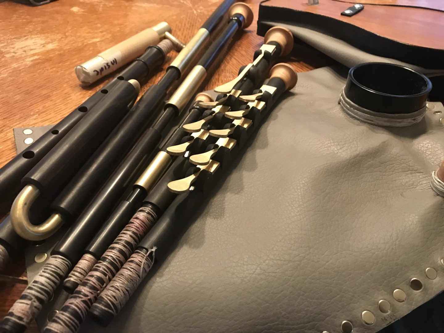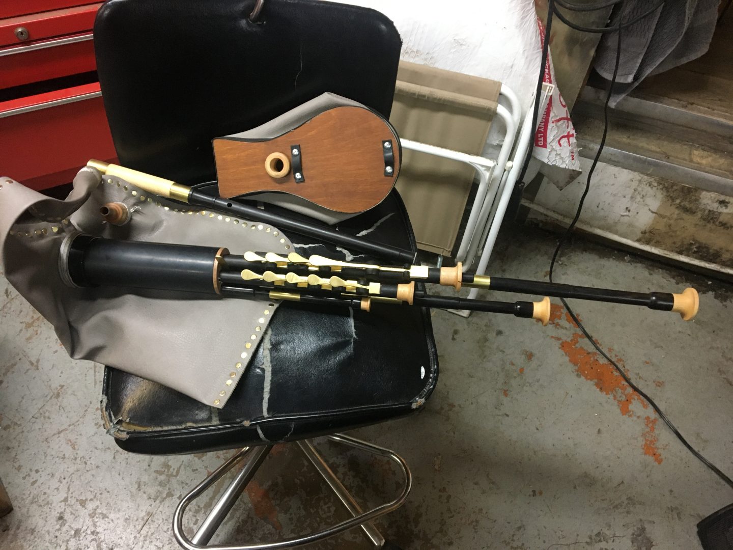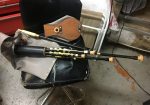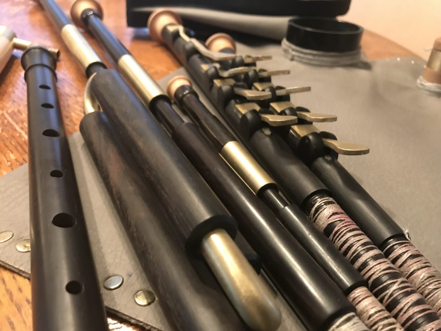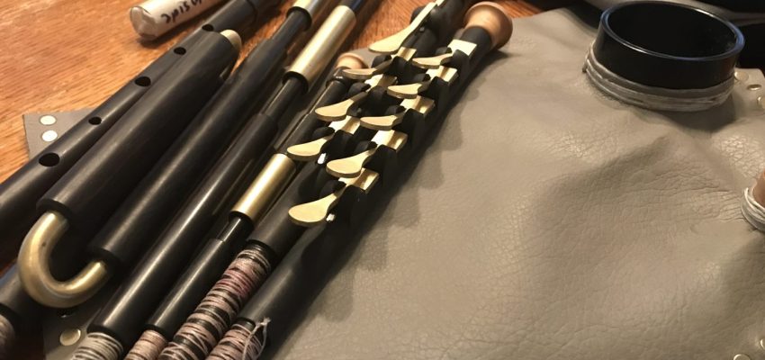 3/4 set concert pitch Kennedy Uillieann set with McConnell bellows and bag. PVC stock – easily upgraded. Blackwood and Maplewood.