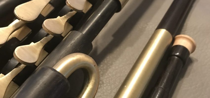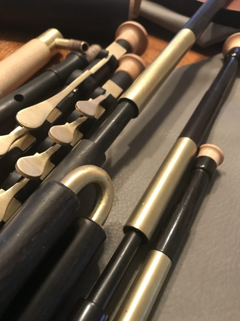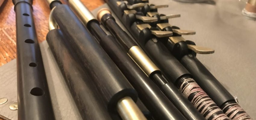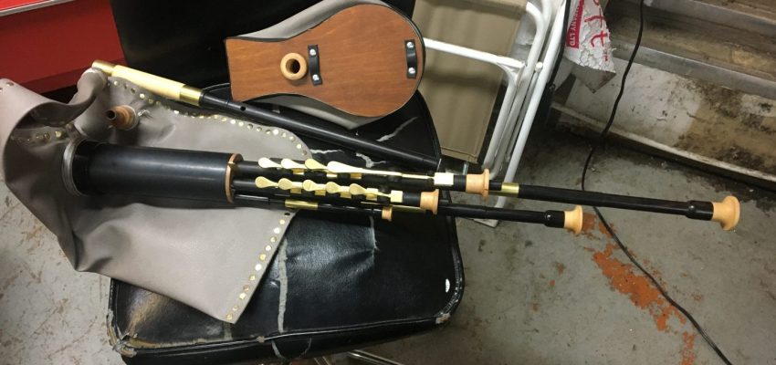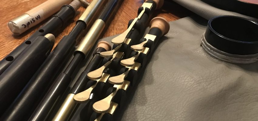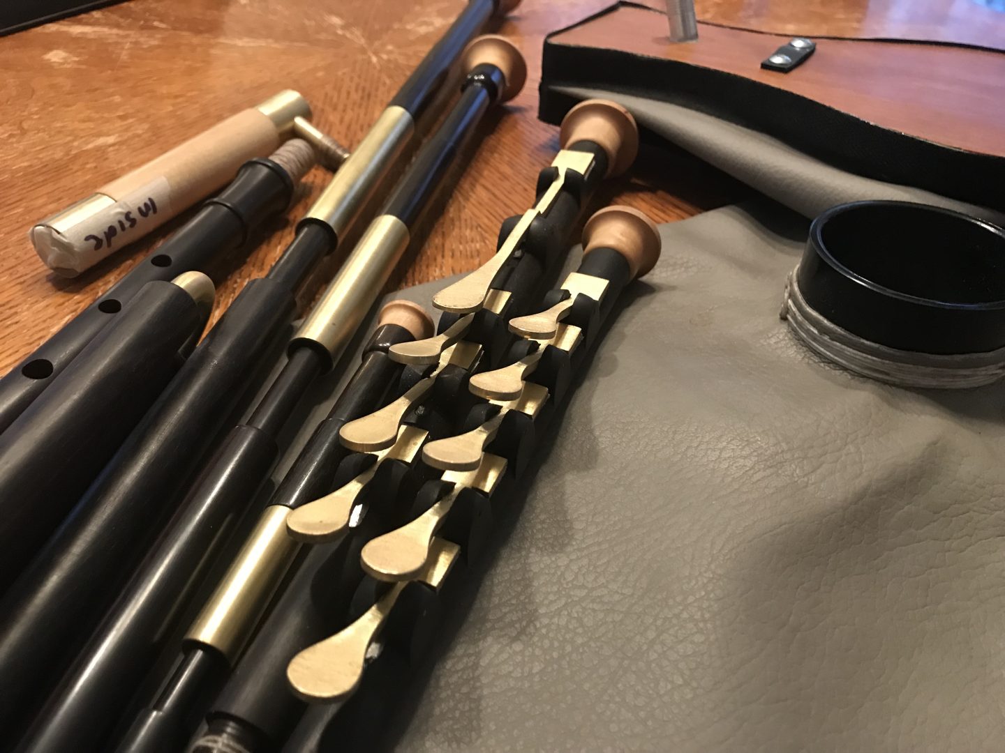 3/4 set concert pitch Kennedy Uillieann set with McConnell bellows and bag. PVC stock – easily upgraded. Blackwood and Maplewood.