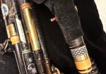 Personally I really like a strap with the drones over my right shoulder so there is not a lot of extra motion as you move the bellows. You will see that I have fitted a very small brass tube in the chanter-stock to act as an air-stop key. This way you can silence the chanter and tune or change the drone setting. Also as I am an Uilleann piper I have added a plastic circle with holes on the bottom of the chanter so that I can play more comfortably with it resting on my knee.