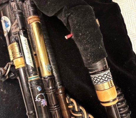 The top quality chanter in “A” and most of the drones were made by the gifted pipe-maker Alan Waldron of Stirling Bagpipes.