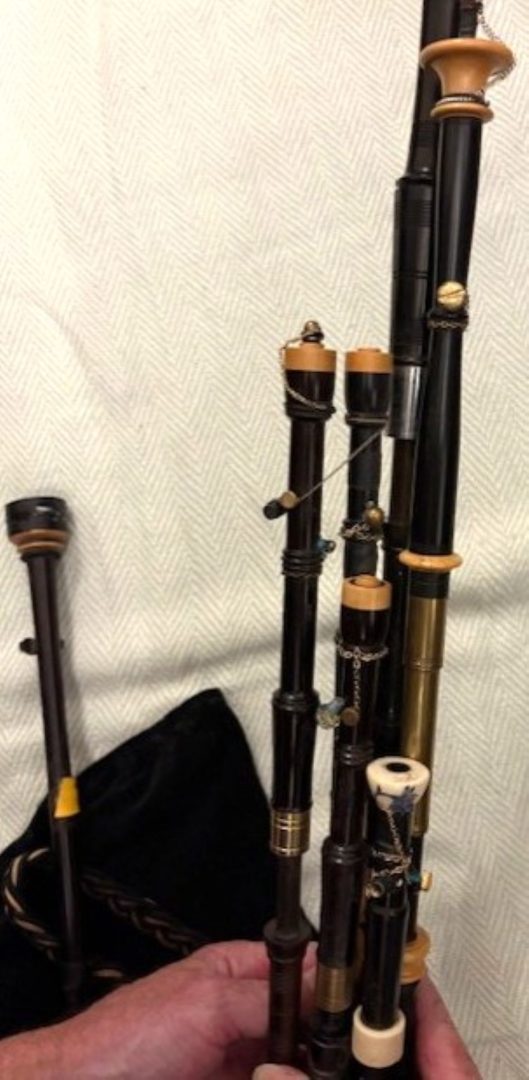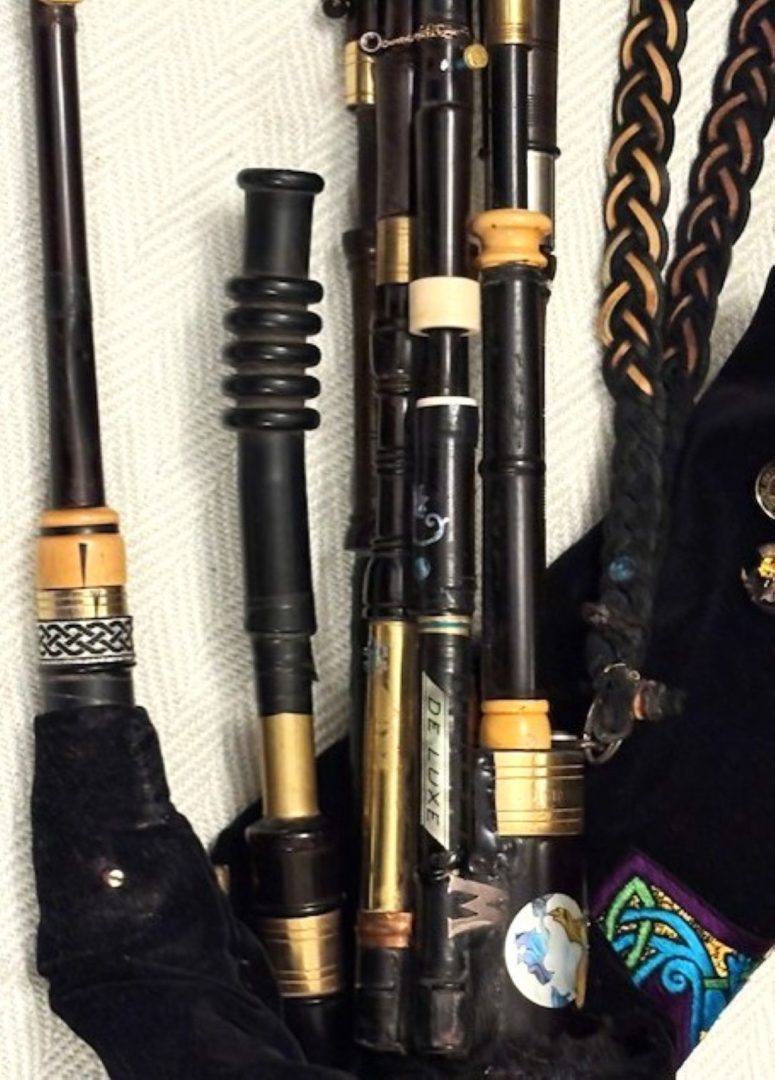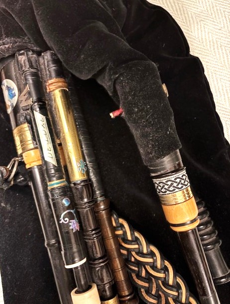 The top quality chanter in “A” and most of the drones were made by the gifted pipe-maker Alan Waldron of Stirling Bagpipes.