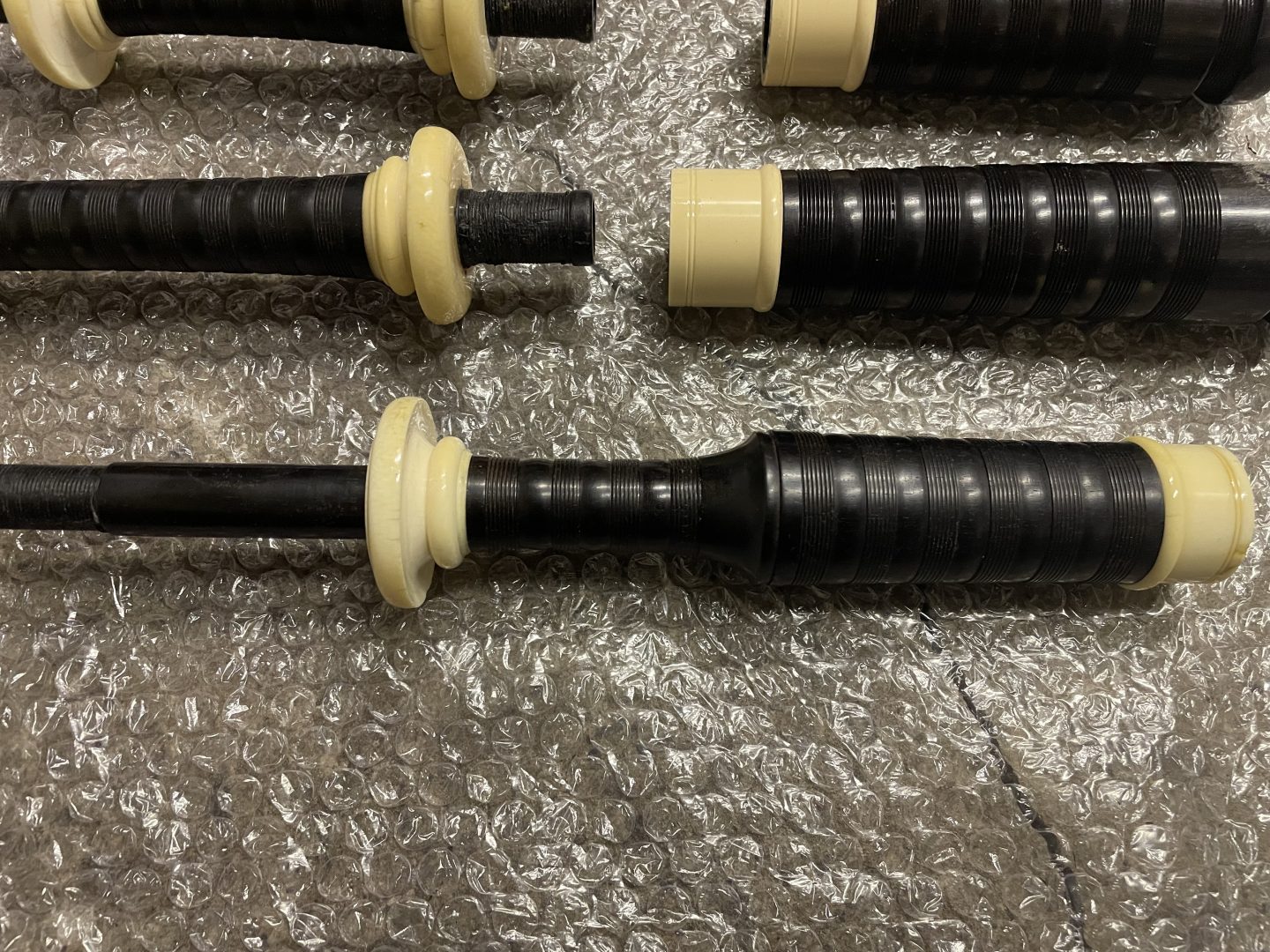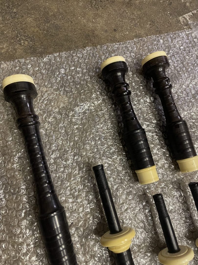 as you can see by the photos this is a bit of a frankenstein set og pipes. All the drones are Blackwood and ivory and in good condition.