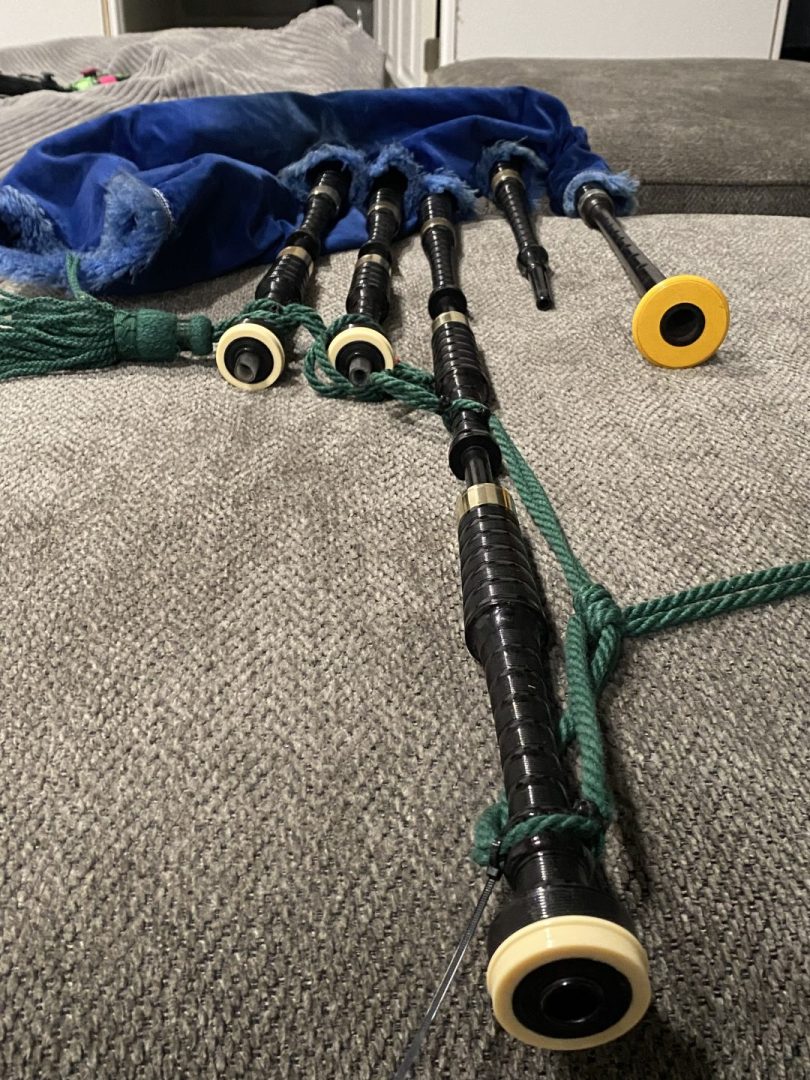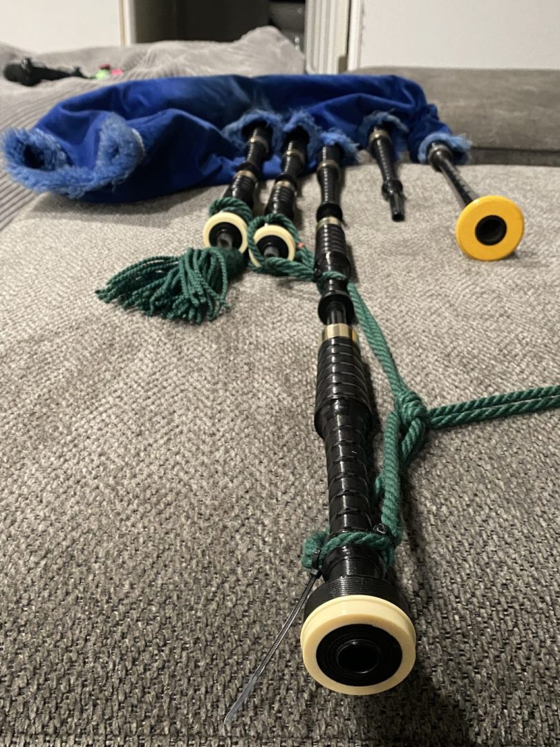 I have a standard chanter Reed and normal ezee drones in the set- and that’s how I’ve been playing them- but I am not including reeds with it!