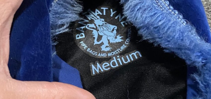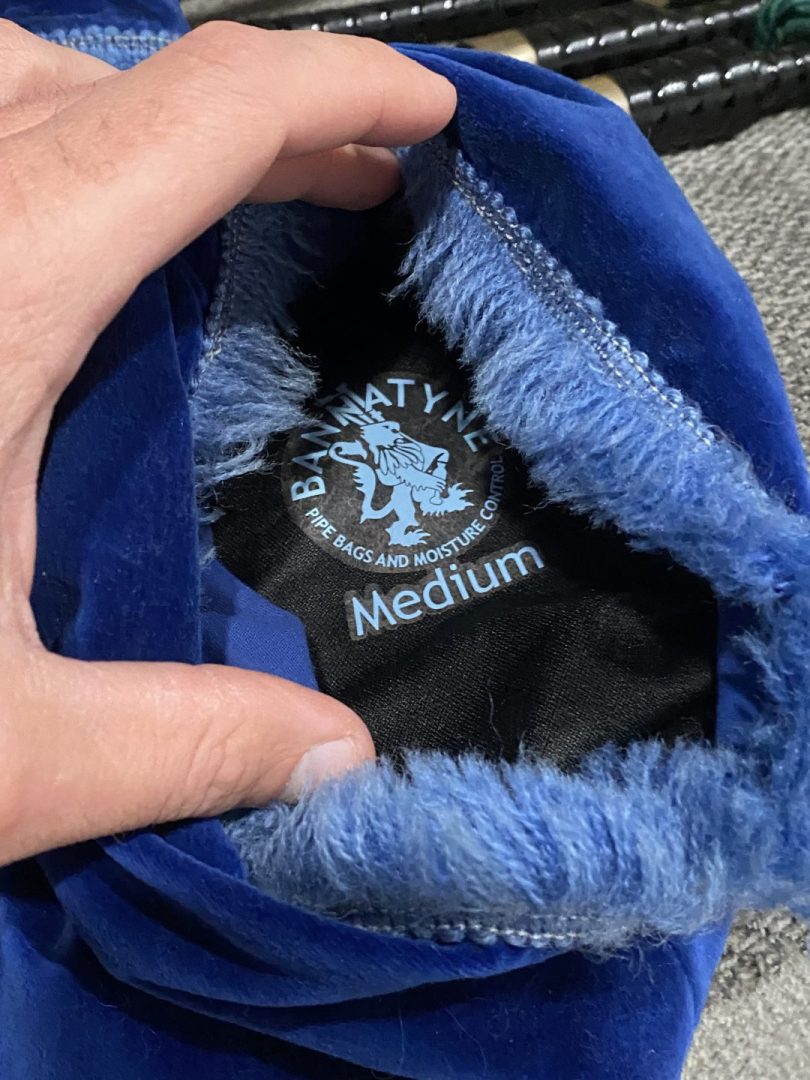 the set is 7/8 and has a nice mellow tone. The ring caps and chanter ferrule were replaced by Dunbar- all other parts are original. Could use a cleaning, the ferrules have some tarnish but should polish up very well..Tied into a new medium bannatyne bag!!