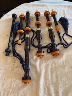 The pipes have a few chips and scratches, commensurate with an instrument of this vintage, but the wood is in great shape, and the bores are arrow straight. Set up to play right out of the box!