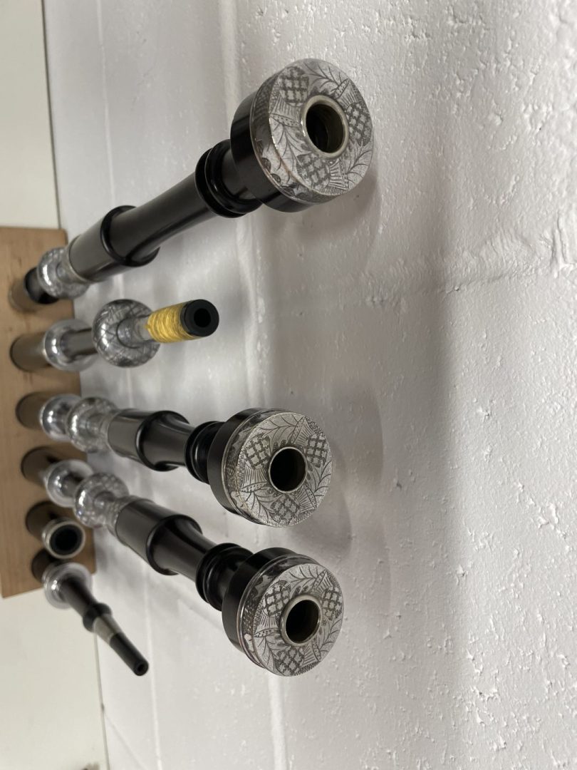 made from African Blackwood, thistle engraved ferrules, slides and Ringcaps.