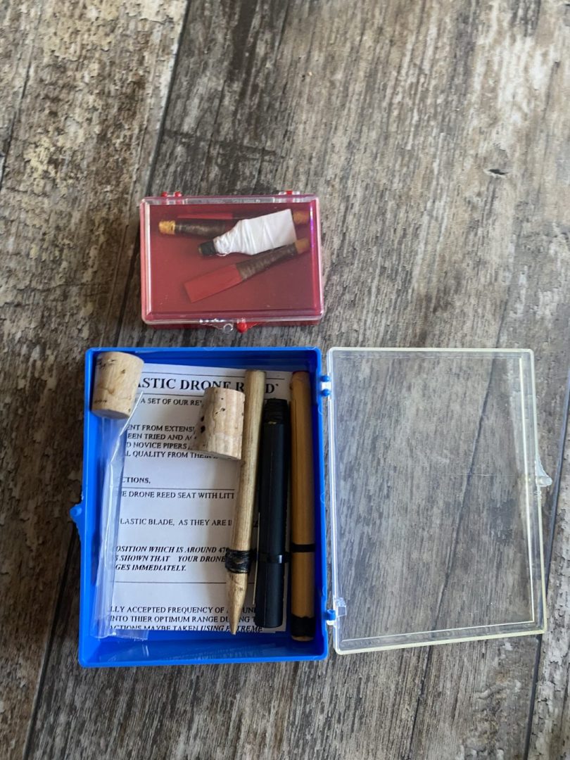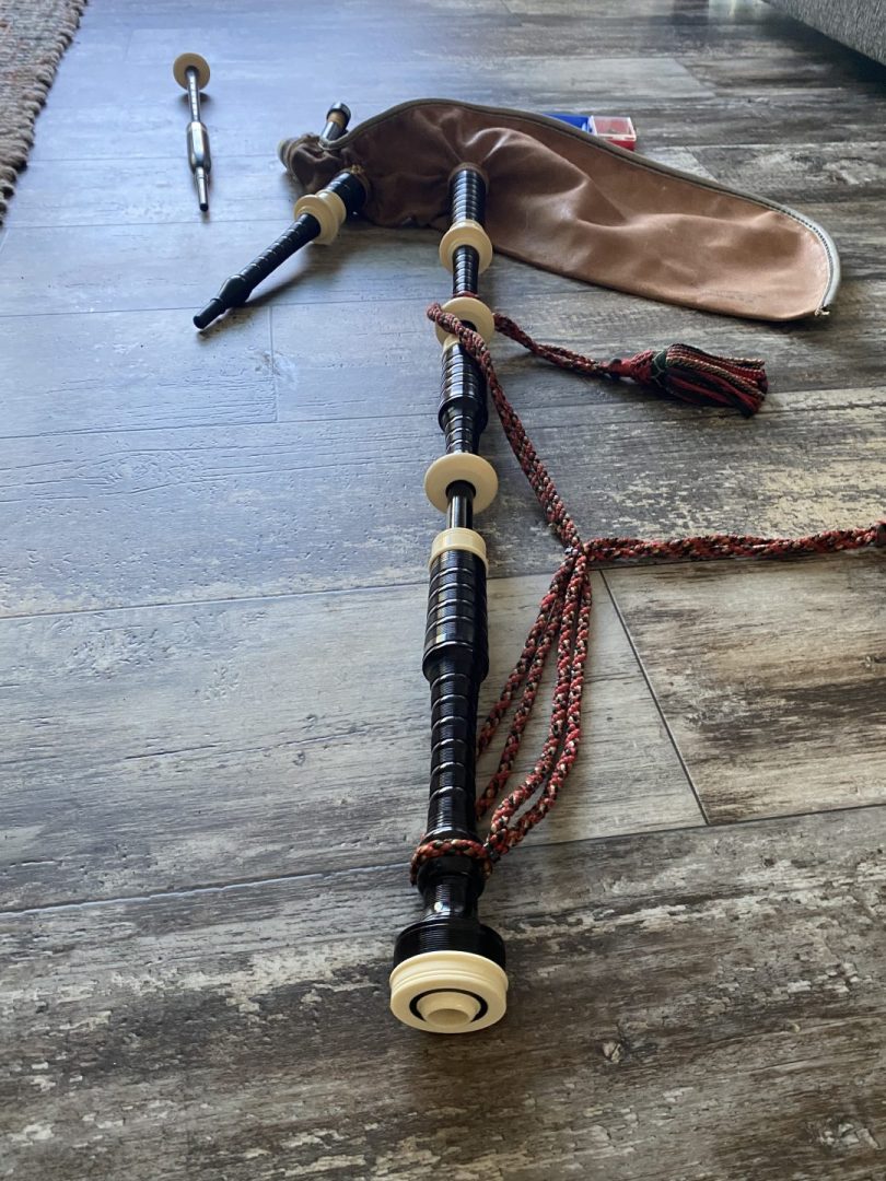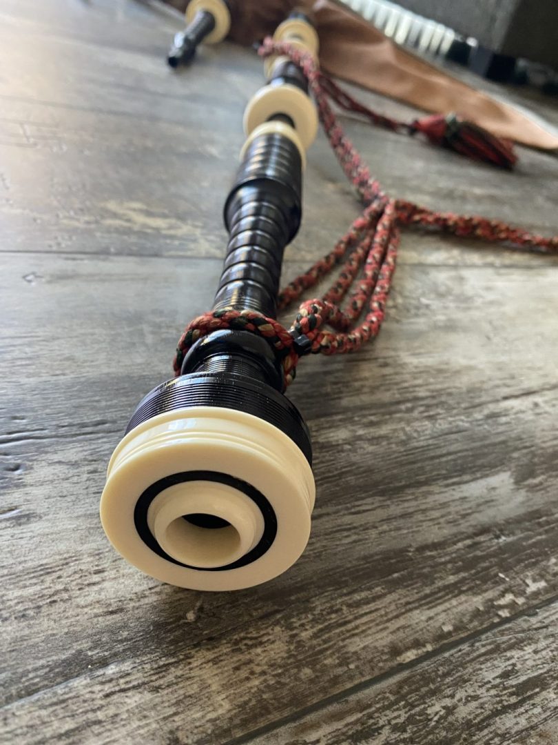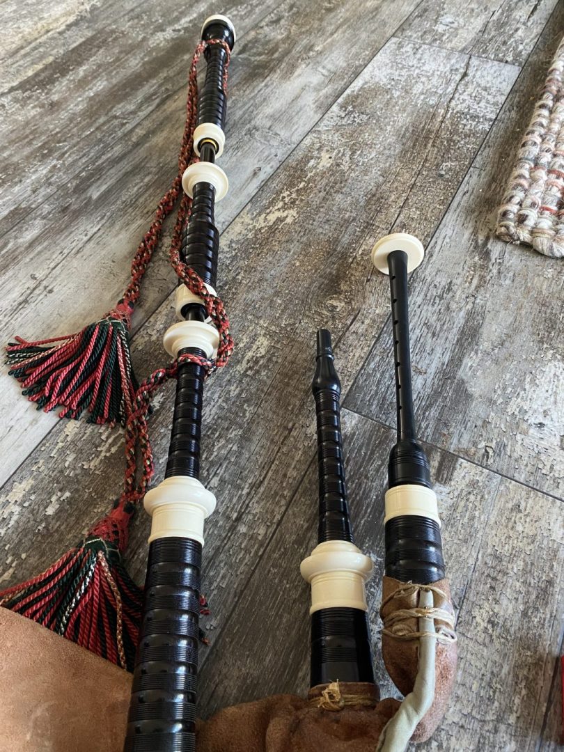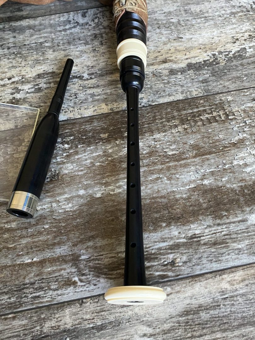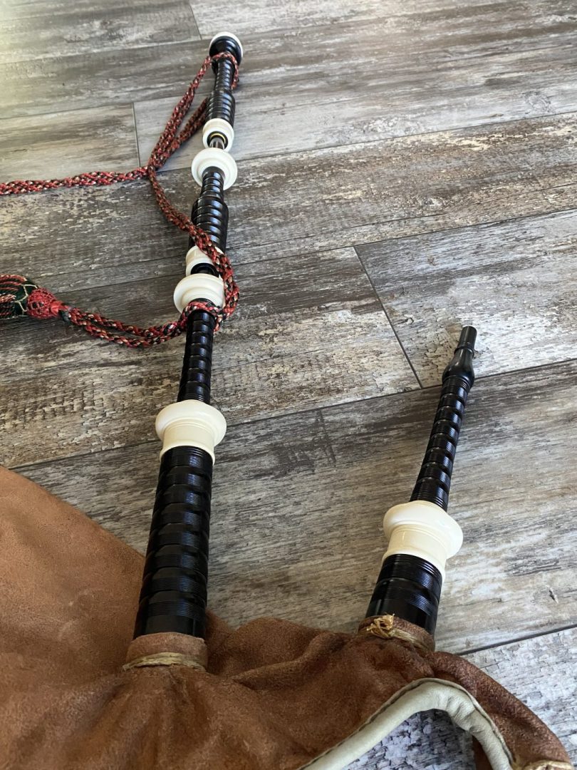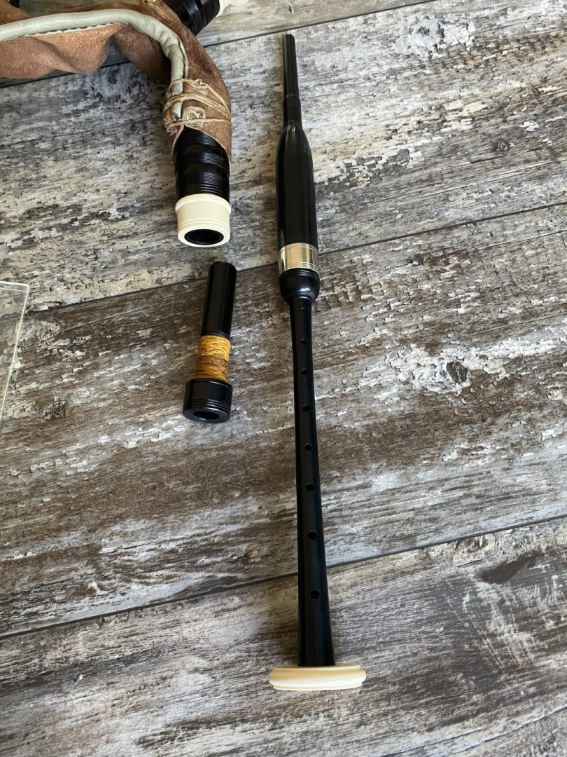 Oddity find. This is what appears to be a factory set of smallpipes from warnock during the war-mac period. What we have is a warnock stamped hide bag with a full size GHB blowpipe stock/stick, bass drone, and a full size chanter stock with a factory conversion piece for a practice chanter to fit in ANd a poly War Mac chanter. All pieces are War-Mac. There are quite a few things you could do with this set up. Would make a great transition piece from chanter to full set of GHB . It is a nice smallpipe though!! the blend of the bass drone with the practice chanter sounds good(especially in person). It also doubles a stand alone practice chanter! Will come with everything you need to play them! Could use a rehemp and a new flapper or valve. Pipes look good/ no cracks. Comes with a couple drone reeds and multiple chanter reeds.https://youtube.com/shorts/1odpNaES1YU?si=WTWTnKHiiwU_uR0H Video clip of sound in listing! Will ship fully insured |