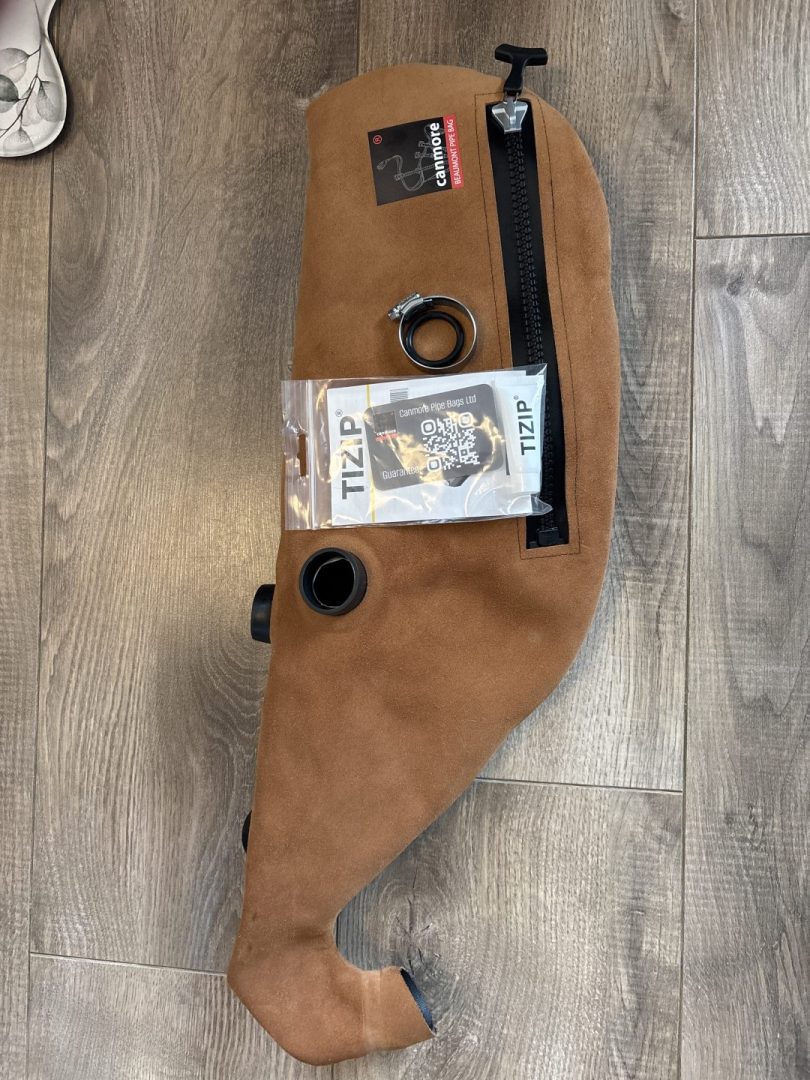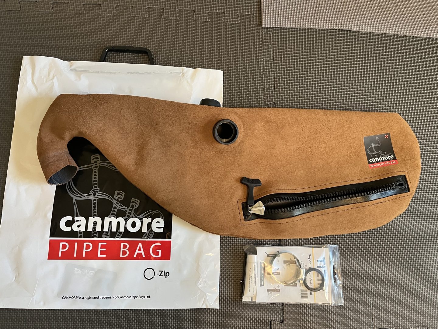 Canmore Synthetic Bagpipe Bag, cover, cords, and Moose Valve